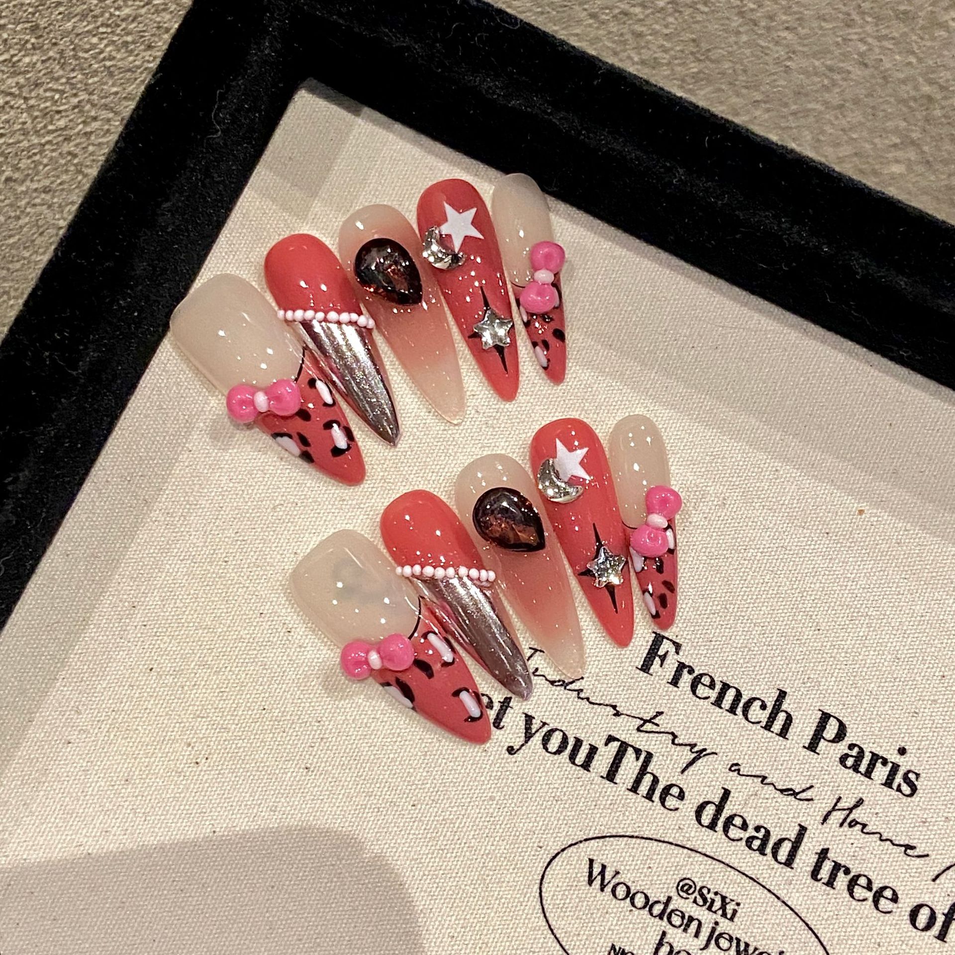 芸禾の千年の甘いクールなギャルの手作りは甲の新型の手描きの高級感の偽の爪の貼る製品のネイルを着ます。