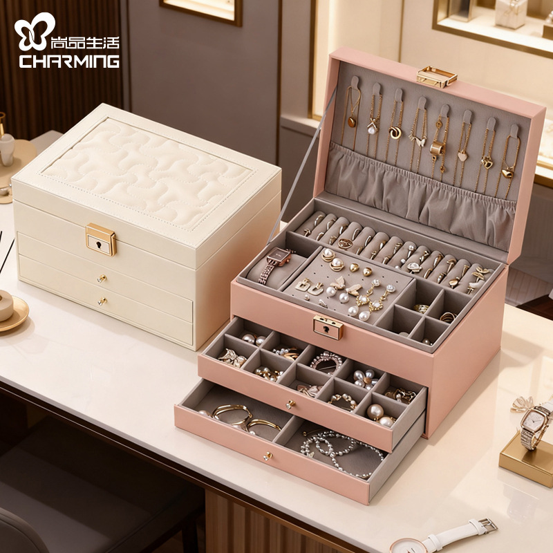 国境を越えた直接供給のジュエリーボックス、軽くて豪華な高級感、多層で大容量、ネックレス、ジュエリー、アクセサリー収納ボックス