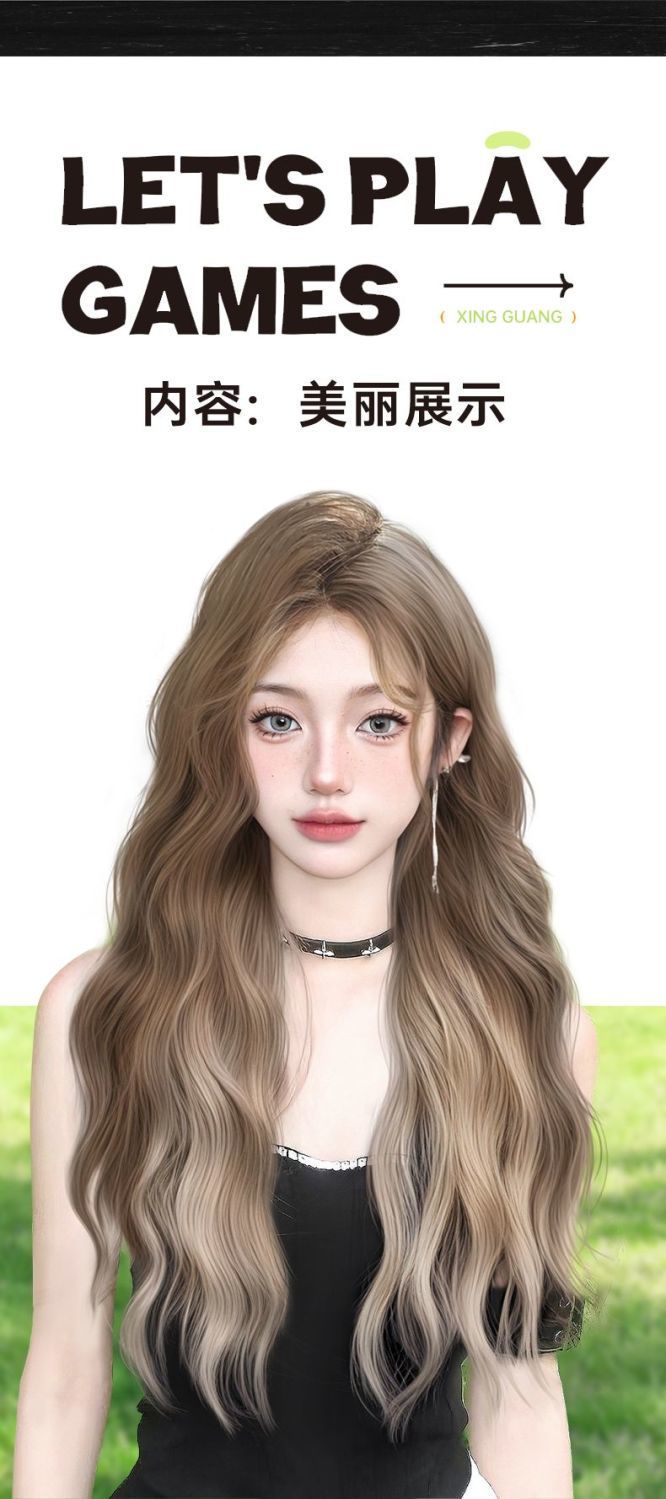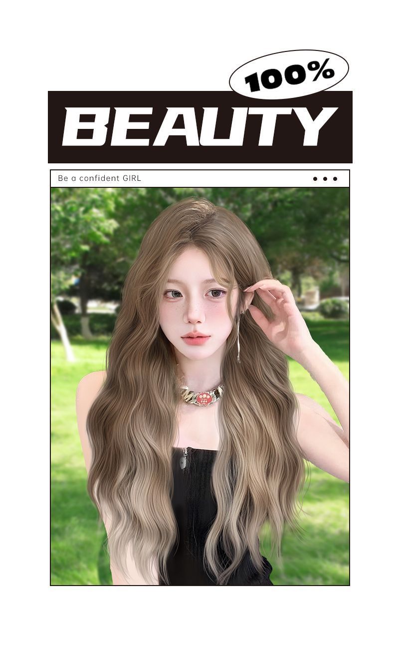 若蘭許昌かつら女夏薄手lolitaミルクティーシャンパン色の長いカールがふわふわしています。