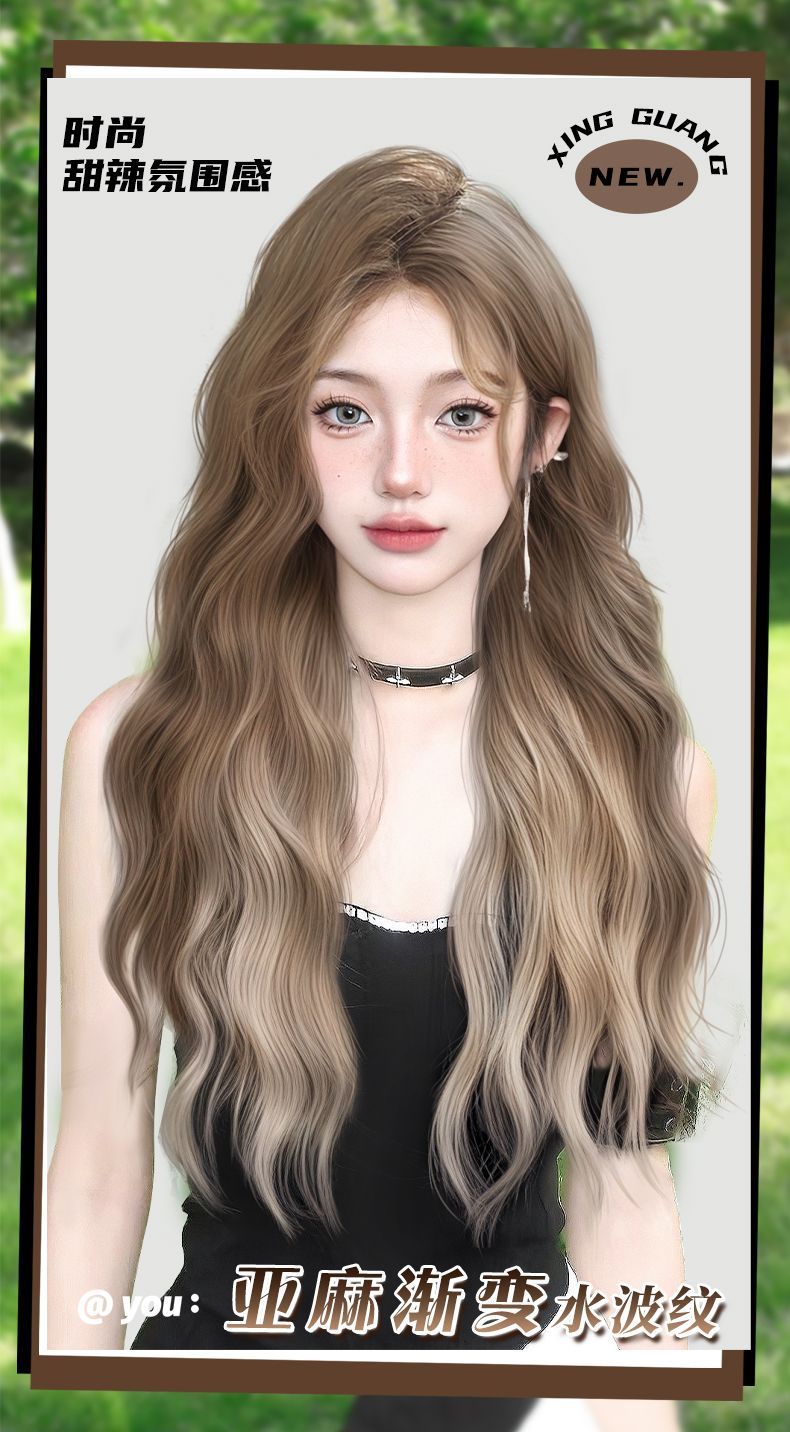 許昌のかつらの女性の亜麻のグラデーションの水の波紋の全体の頭のカバーのパリの絵は女性団の長い巻き髪を染めます。