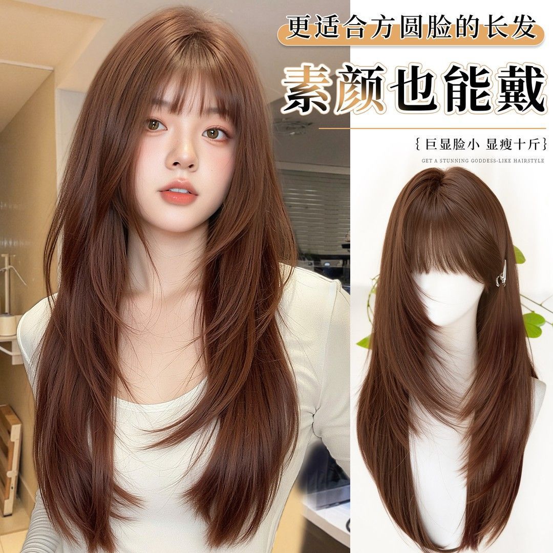 假发全头套女刘海高层次长直发韩系焦糖色高颅顶仿真发整顶假发套