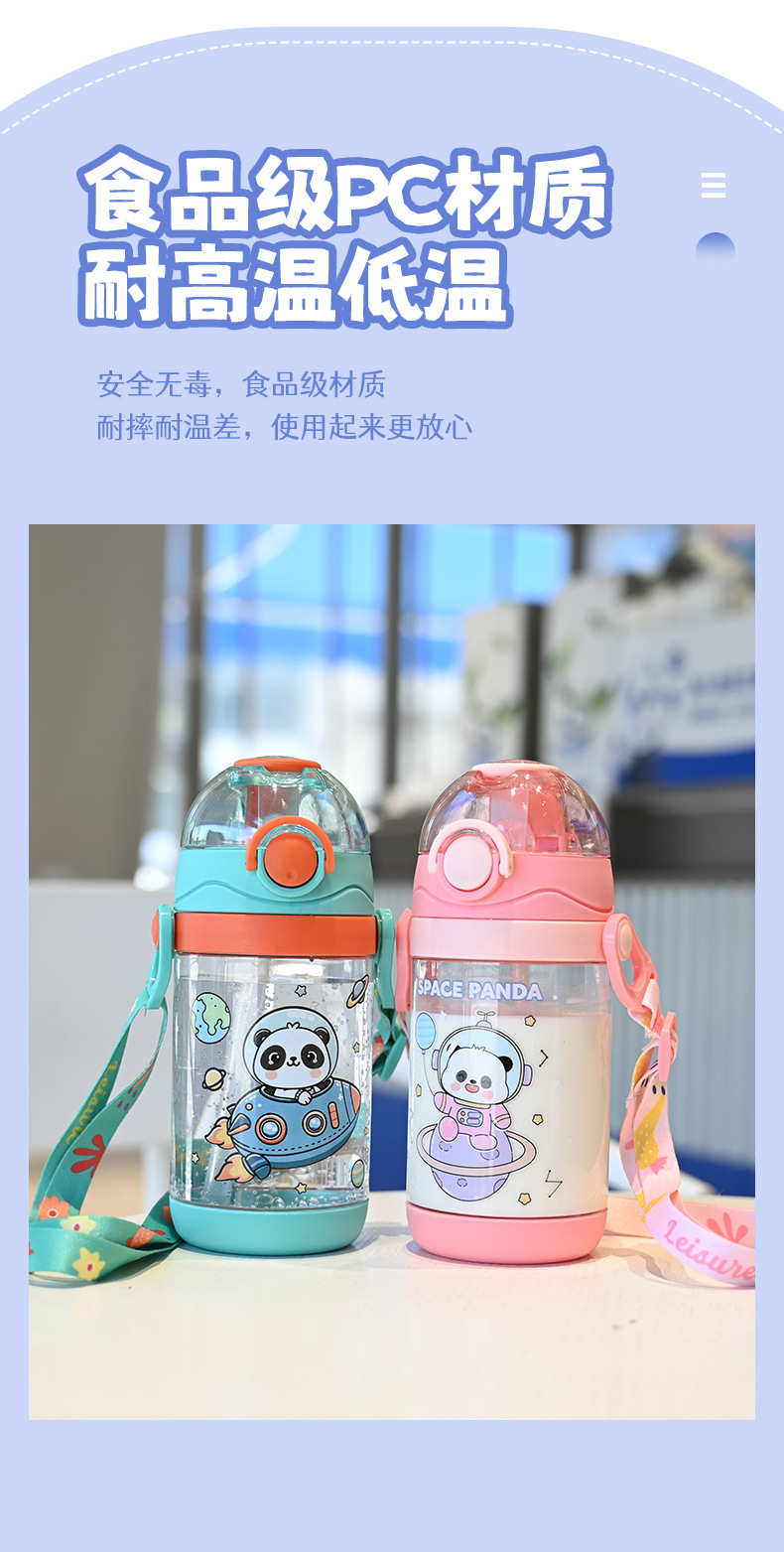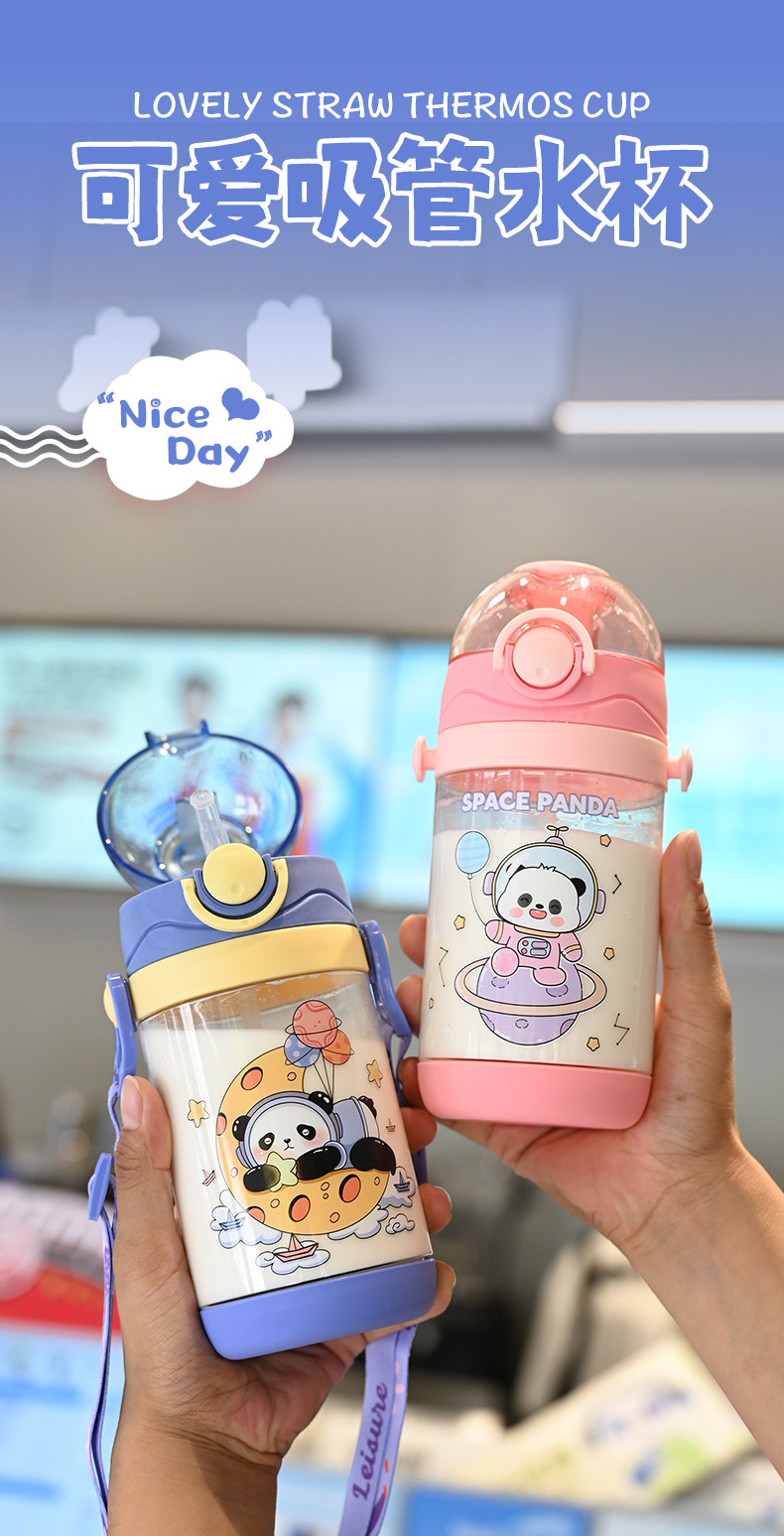 儿童水杯女孩可爱耐摔耐高温背带水壶幼儿园上学户专用刻度吸管杯