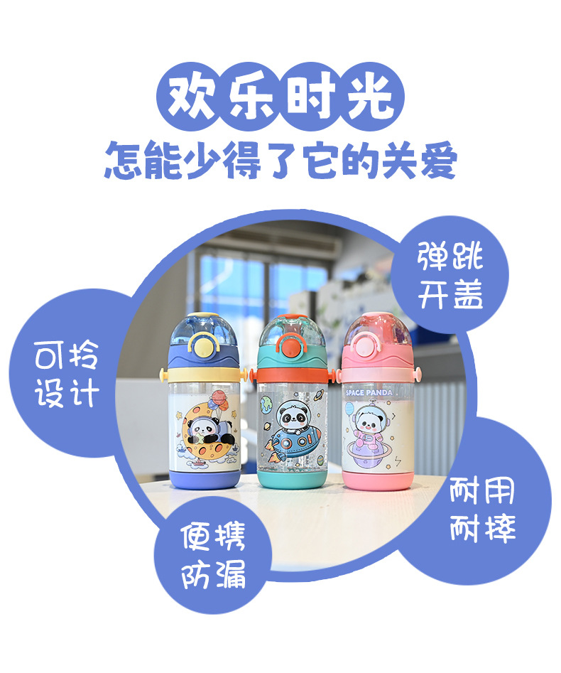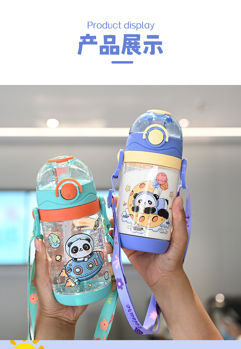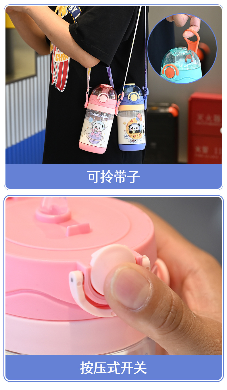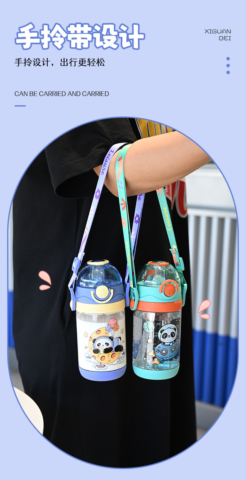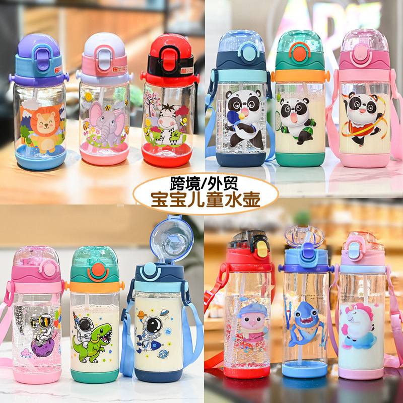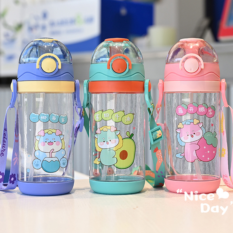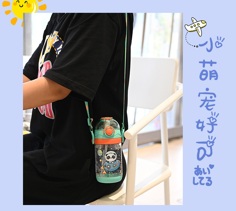 クロスボーダー子供ストローコップ高颜値かわいいスポーツコップ600ml携帯ハンドルプラスチックコップ
