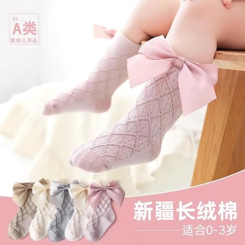 赤ちゃんの靴下の卸売りの外国貿易の越境の春秋の金の中筒の蝶結びの王女の靴下の新生児の女の子のレースの靴下