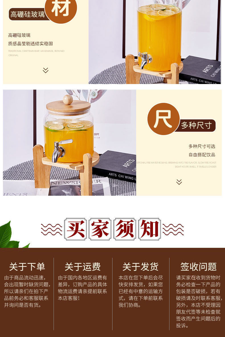 パーティードリンクディスペンサージュース缶コーラバレル蛇口レモンフルーツ茶酵素バレルガラス泡瓶酒壇