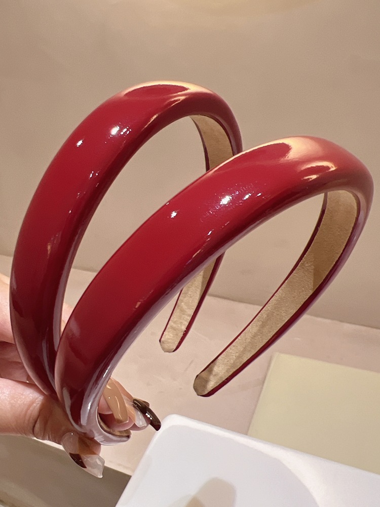韩国复古红色皮质发箍高级感外出气质发卡高颅顶头箍简约百搭头饰