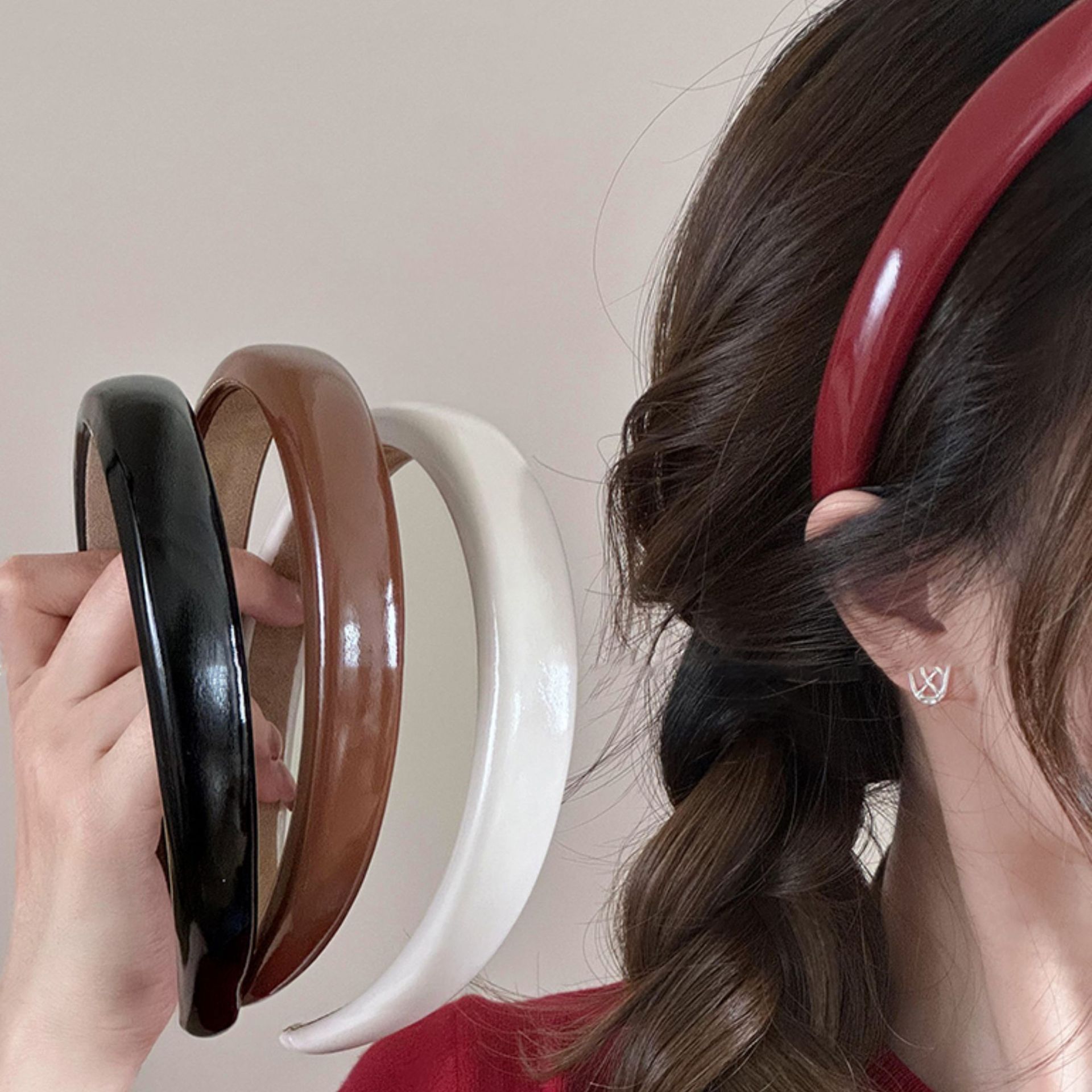 韩系彩色皮质海绵发箍女高颅顶压发头箍不勒头日常外戴发卡子发饰