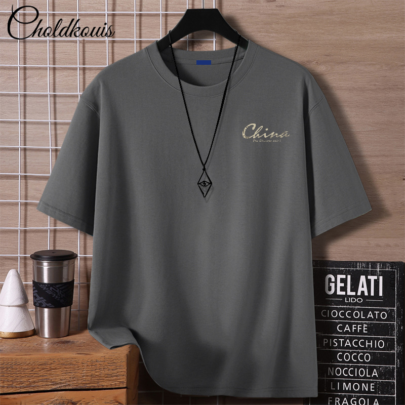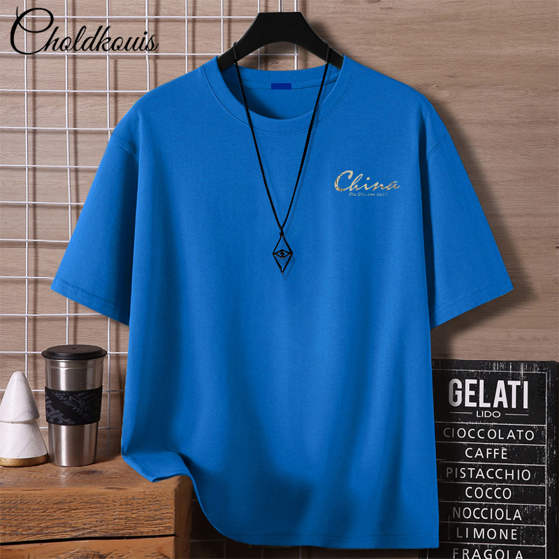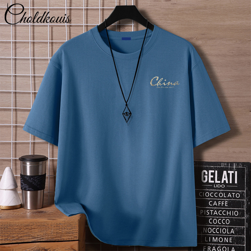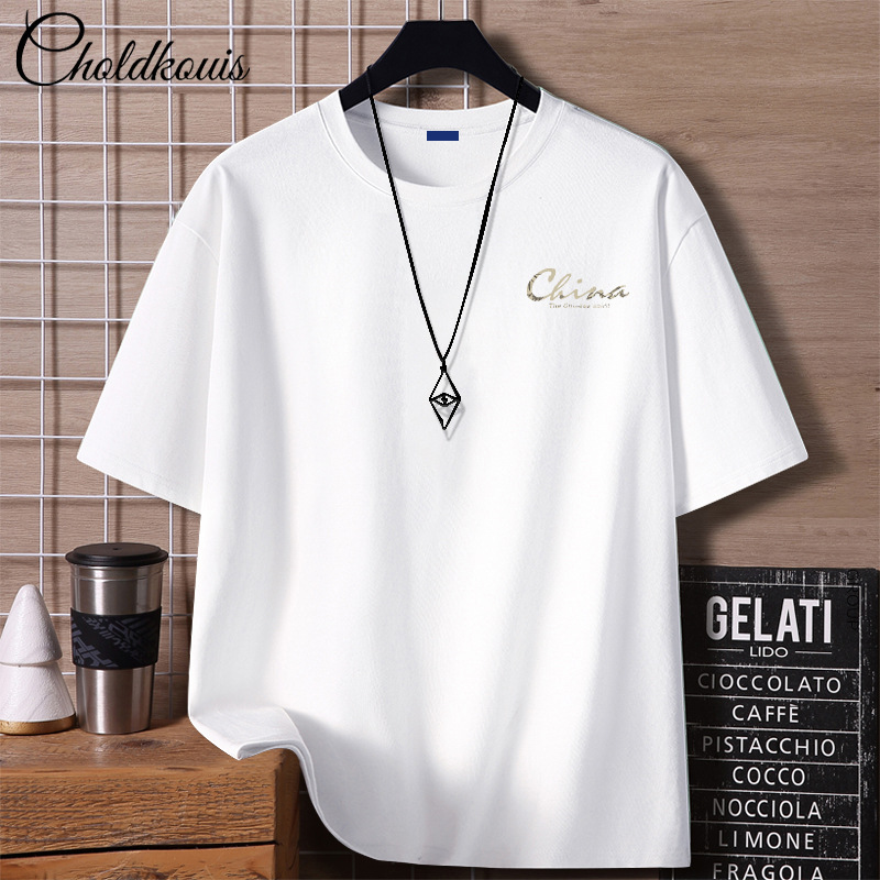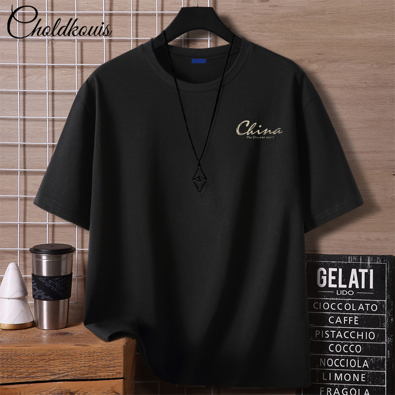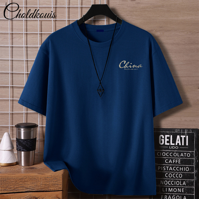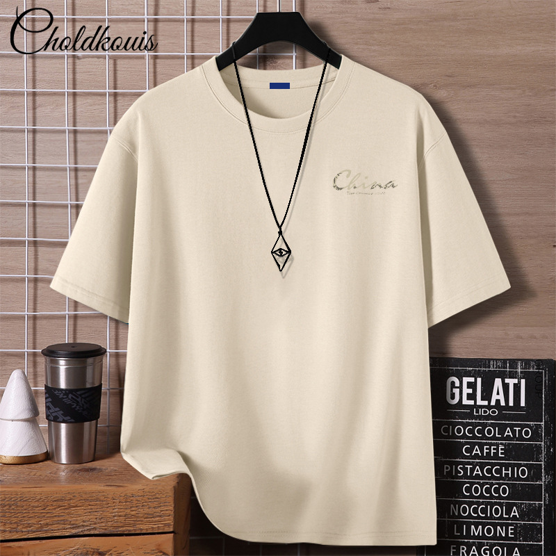 重いポンドのtシャツの男性の夏の服のアメリカの高い街の半袖の潮のブランドのファッションの紳士服の半袖の純綿の上着