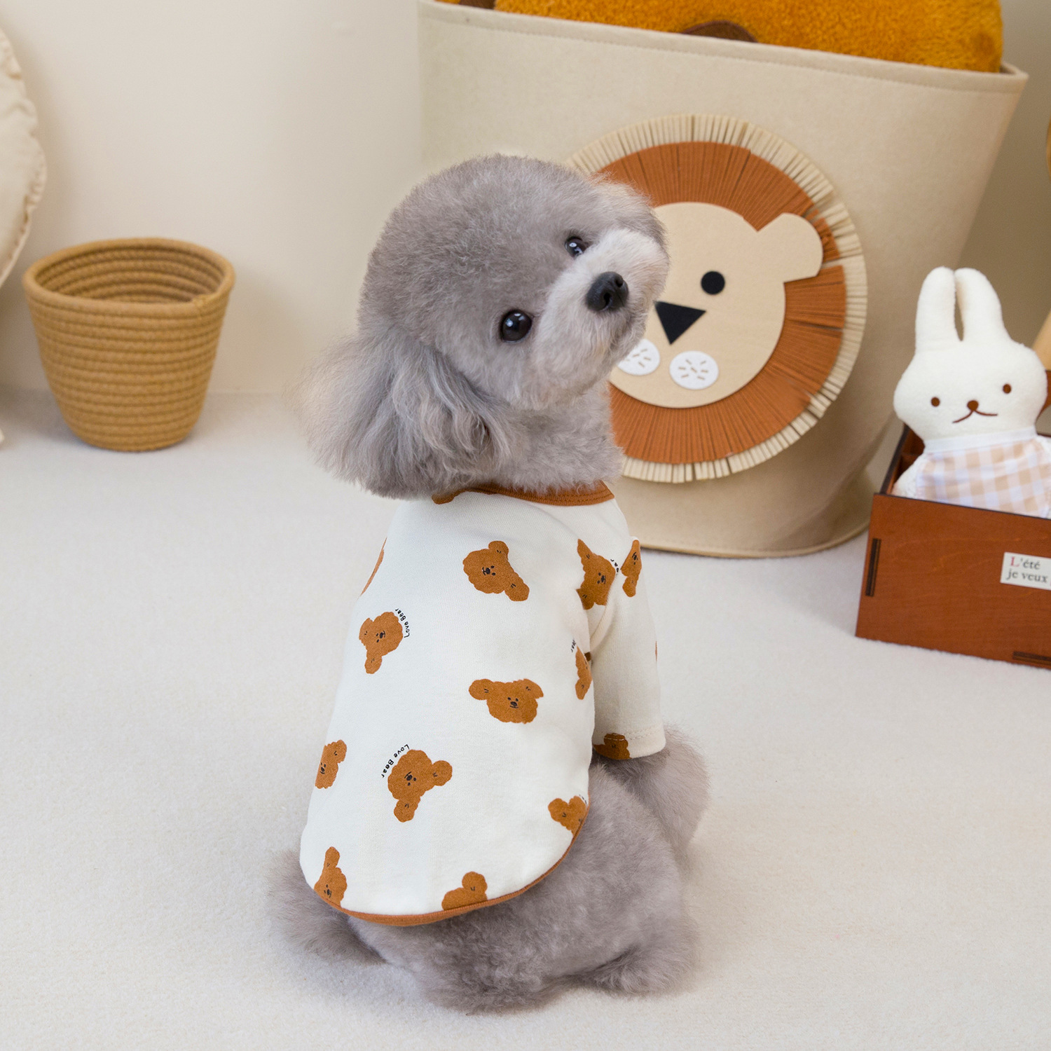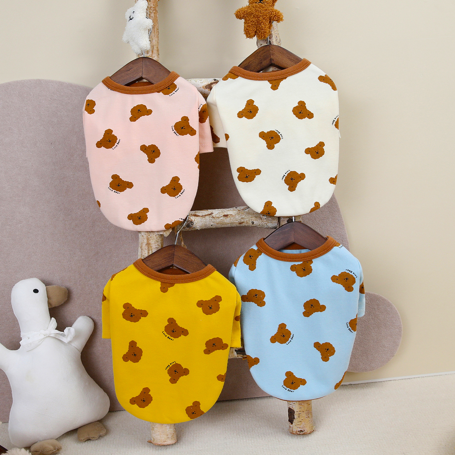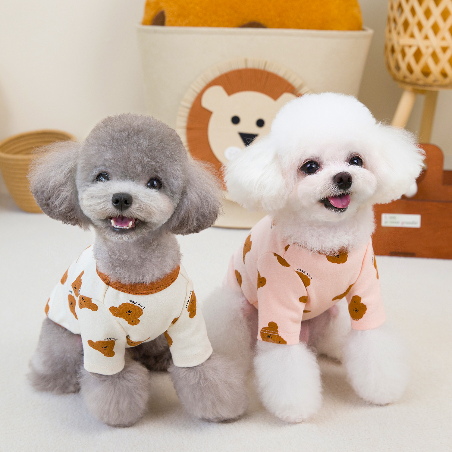 ペット用品卸売り犬服猫小型犬服快適弾力性24四色プリント熊四脚家庭服
