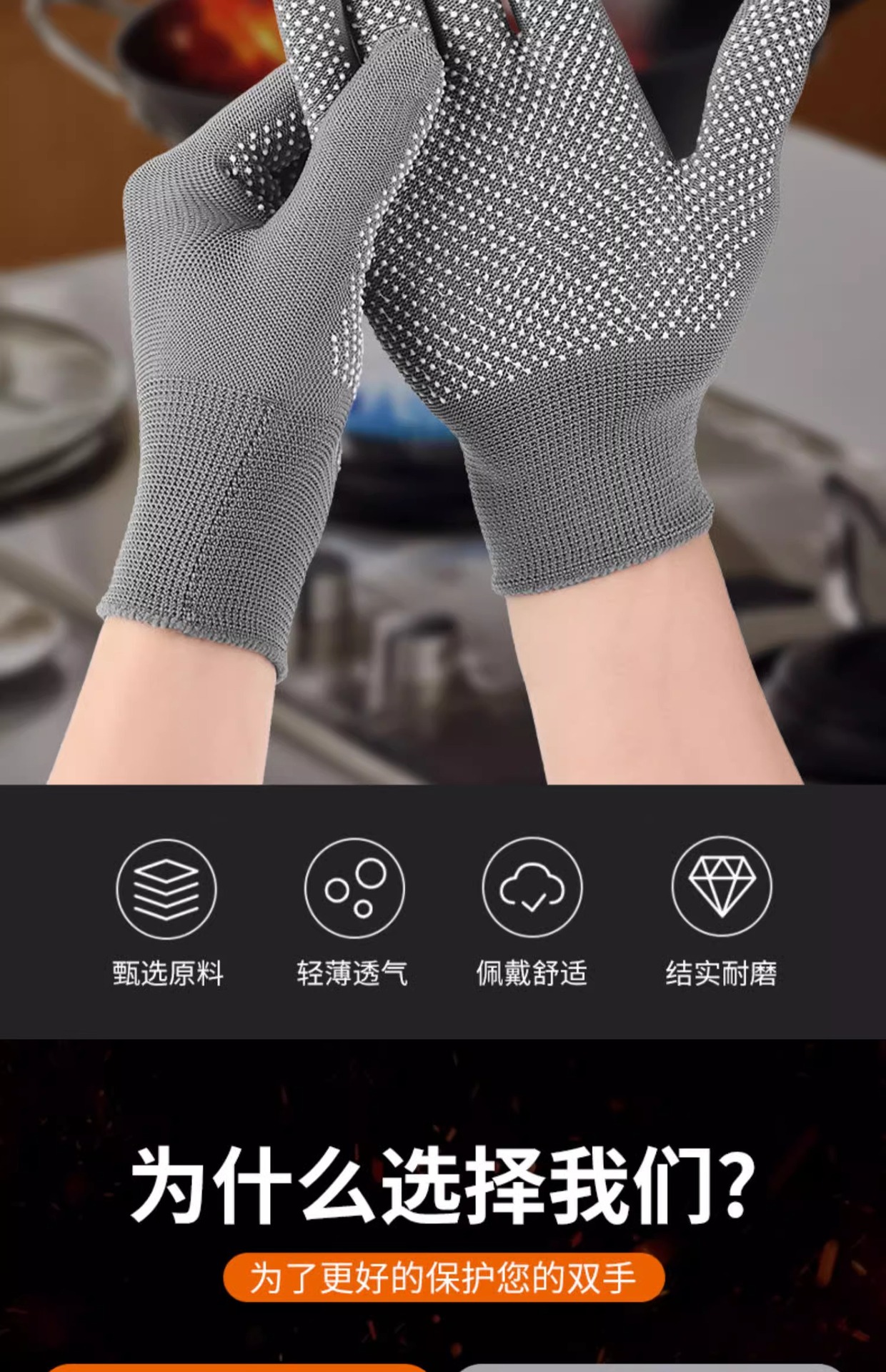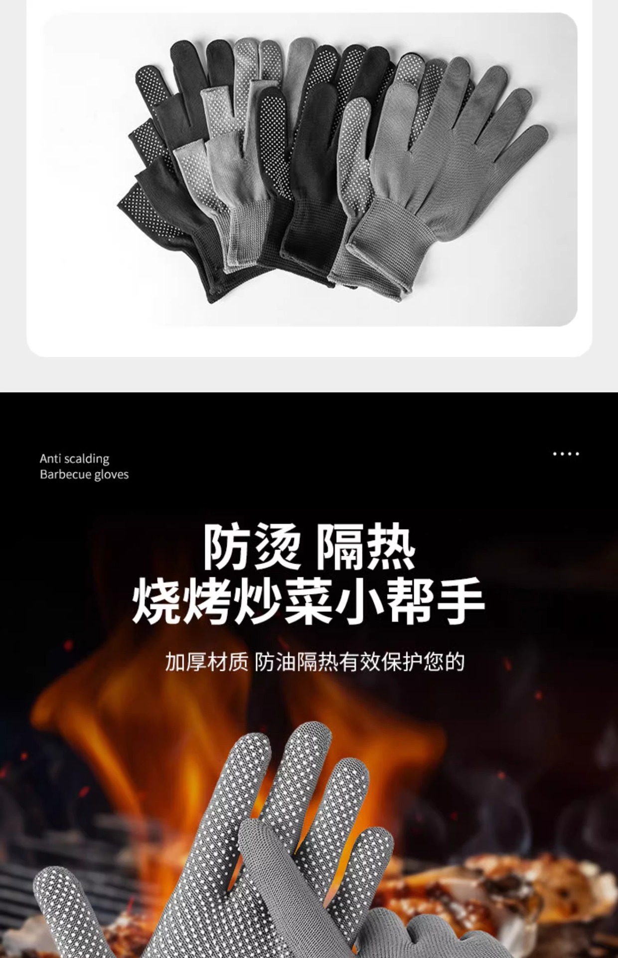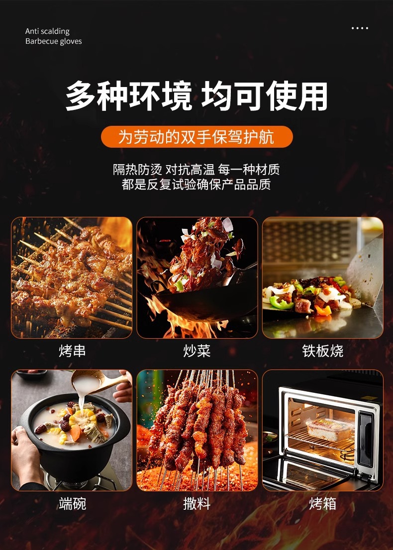 【到手6双烧烤防烫手套】耐高温家用炒菜隔热防溅油烤串厨师用具
