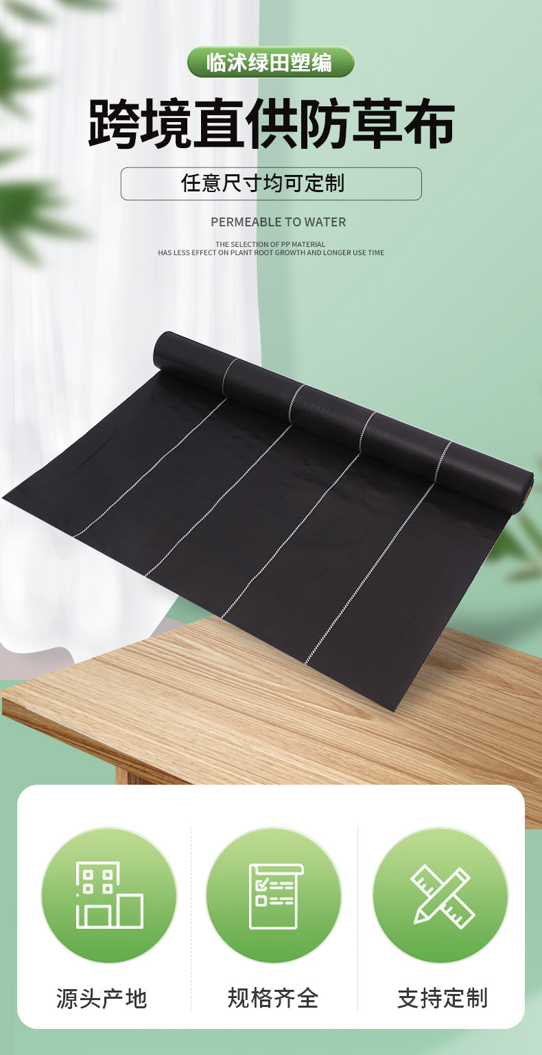 防草布グリーンスポット卸売り多目的防草布園林農業用通気保湿黒緑色草刈布pp