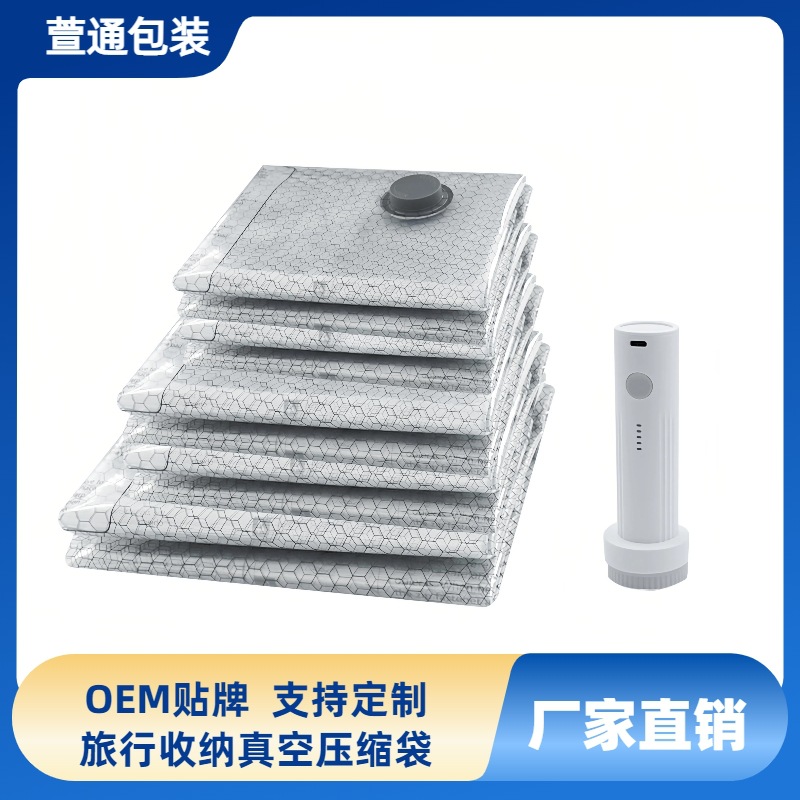 现货供应灰色亚马逊旅行套装真空压缩袋密封收纳袋衣服透明真空袋