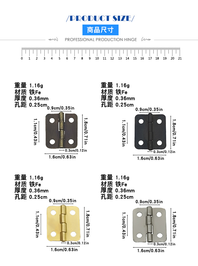 小ヒンジ13*12/16*12/18*15家庭用金物鉄合葉ヒンジ卸売り工芸箱ミニヒンジ