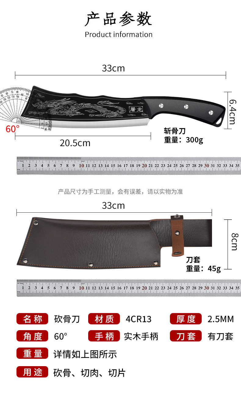 仕様 【厚さ2.2】龍殺し・切断多目的ナイフ 木製ハンドル(革シース含む) 無垢材ハンドル,【厚さ2.2】龍を屠殺して切断する多目的ナイフ - ゴムハンドル(革シースを含む) - 無垢材ハンドル,オールスチールチョッピングナイフ+レザーケース