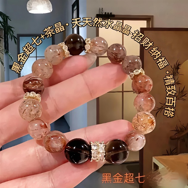 水晶天然黑金超七搭配茶晶手链女轻奢手串清透直播爆款水晶手链