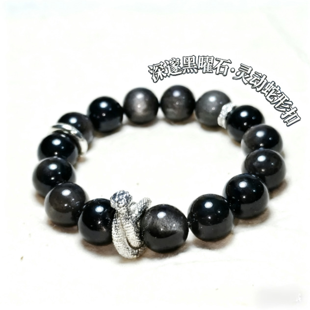 天然黒曜石ブレスレット、紫水晶、アクアマリン、運気を高めるビーズ、手作り仏珠ブレスレット、鑑定書付き、招財ブレスレット