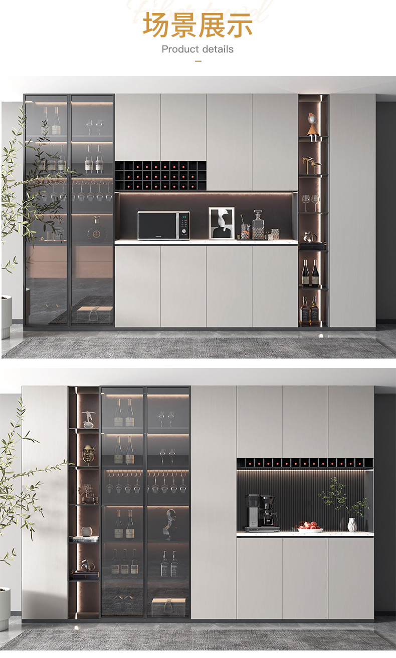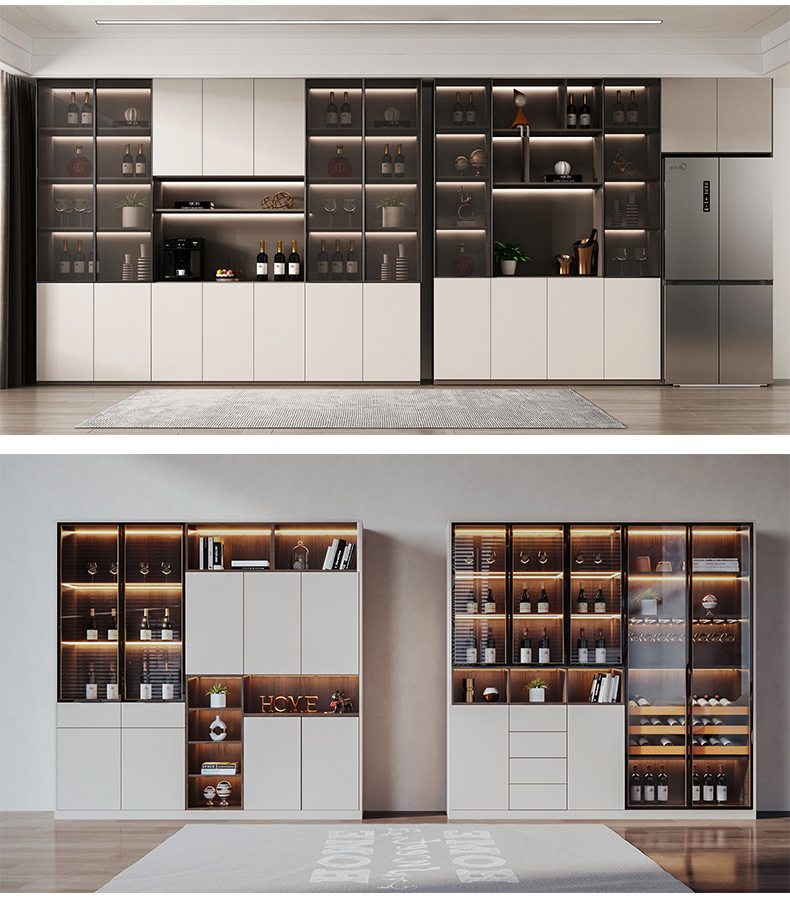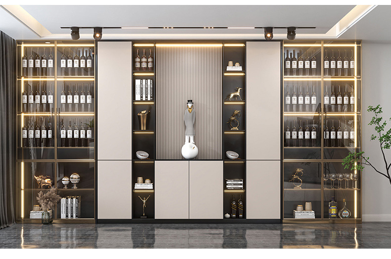 ガラスワインキャビネット、リビングルームの壁面収納キャビネット、レストランのゴールデンワインキャビネット、ディスプレイキャビネット、収納サイドボード、家全体のカスタマイズ