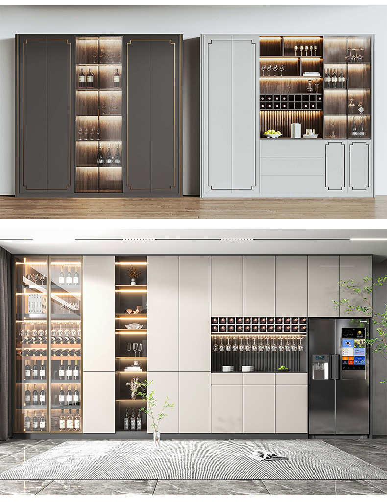 ダイニングサイドキャビネット、全室カスタムメイドのワインキャビネット一体型、壁掛けホテル用ハイキャビネット、無垢材多層板寝室用多機能収納キャビネット