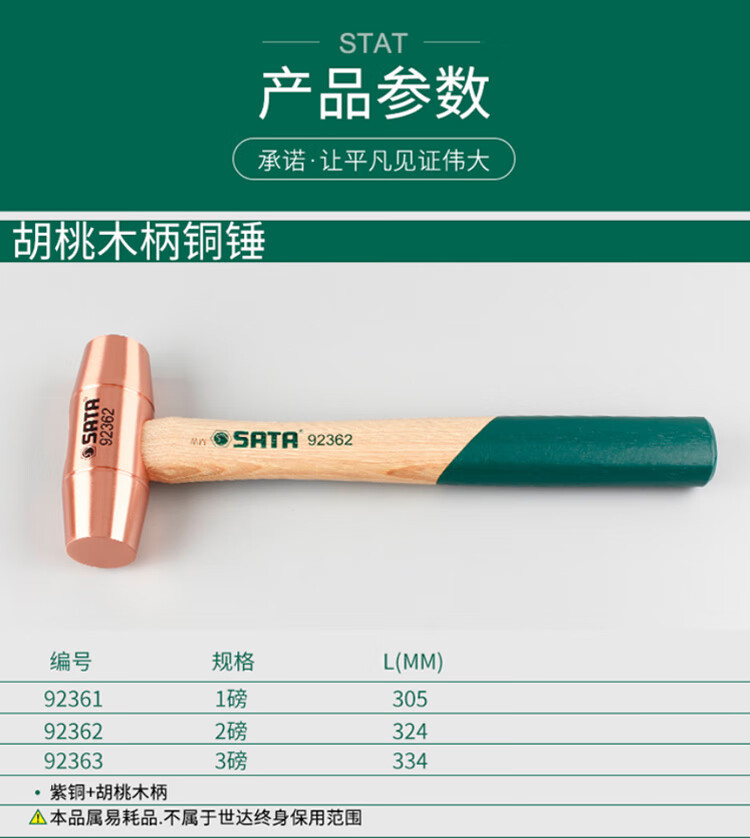 世達SATA 92363胡桃木柄銅ハンマー3ポンド