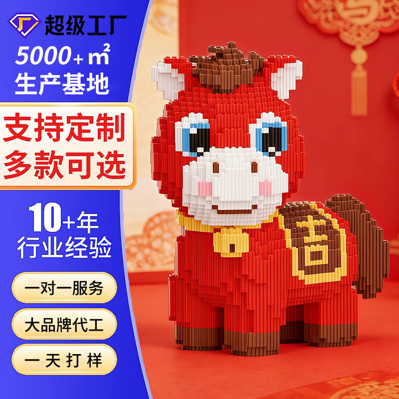 哭哭马公仔2026马年吉祥物摆件积木小颗粒拼装玩具笑笑马文创礼品