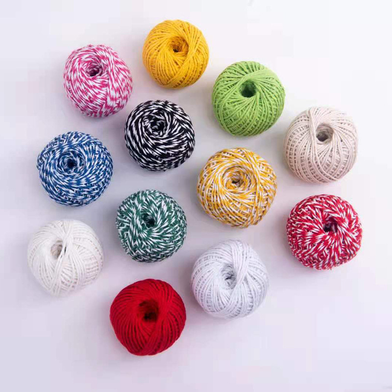2色のストランドのクリスマスの祝日のパーティーの装飾の綿の線はちまきの縄の線の2mm100メートルのカラーの太い綿の縄を包みます。