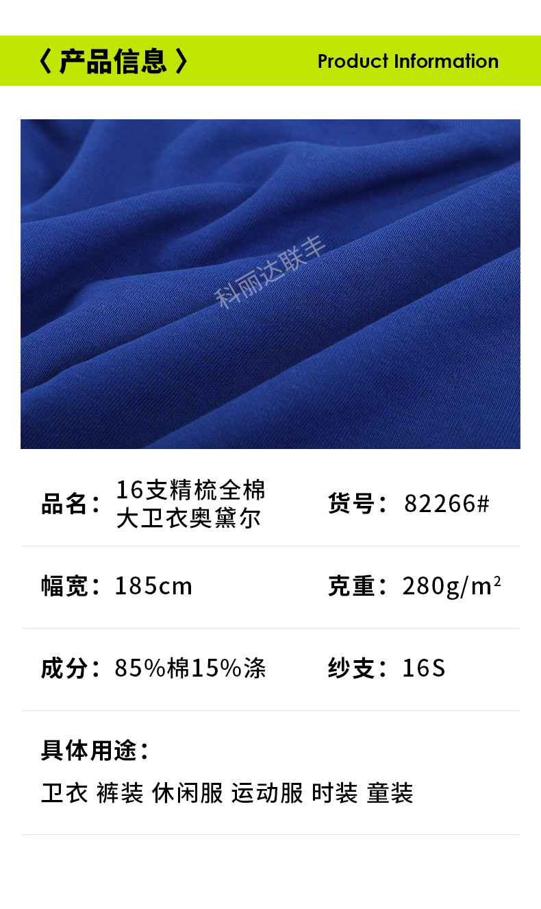16支CVC大卫衣针织面料280克棉涤混纺毛圈布布料卫衣布匹面料布