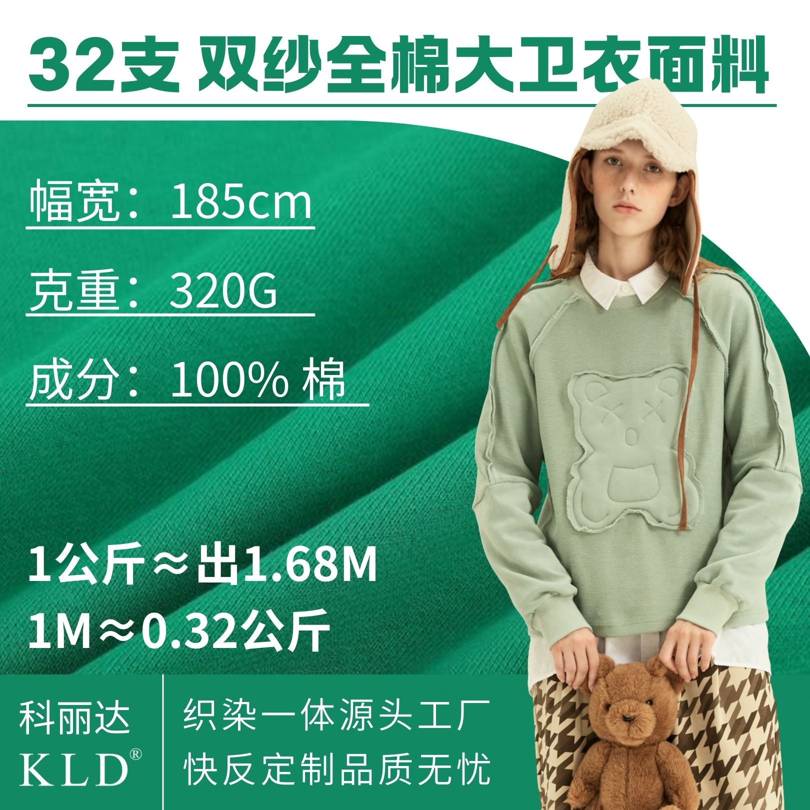 32s纯棉双纱大卫衣布料320克全棉卫衣毛圈布针织面料潮牌卫裤布匹