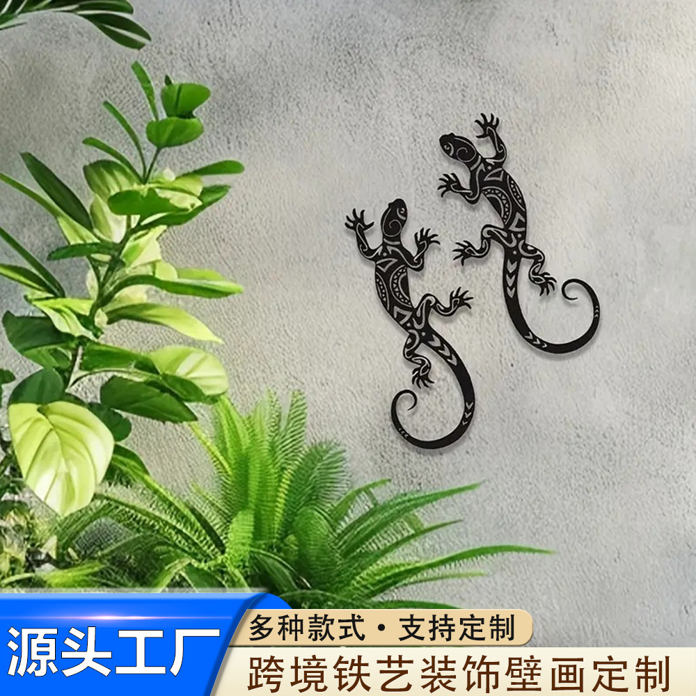 跨境新款两只壁虎铁艺墙饰金属工艺品高级感创意摆件客厅墙壁装饰