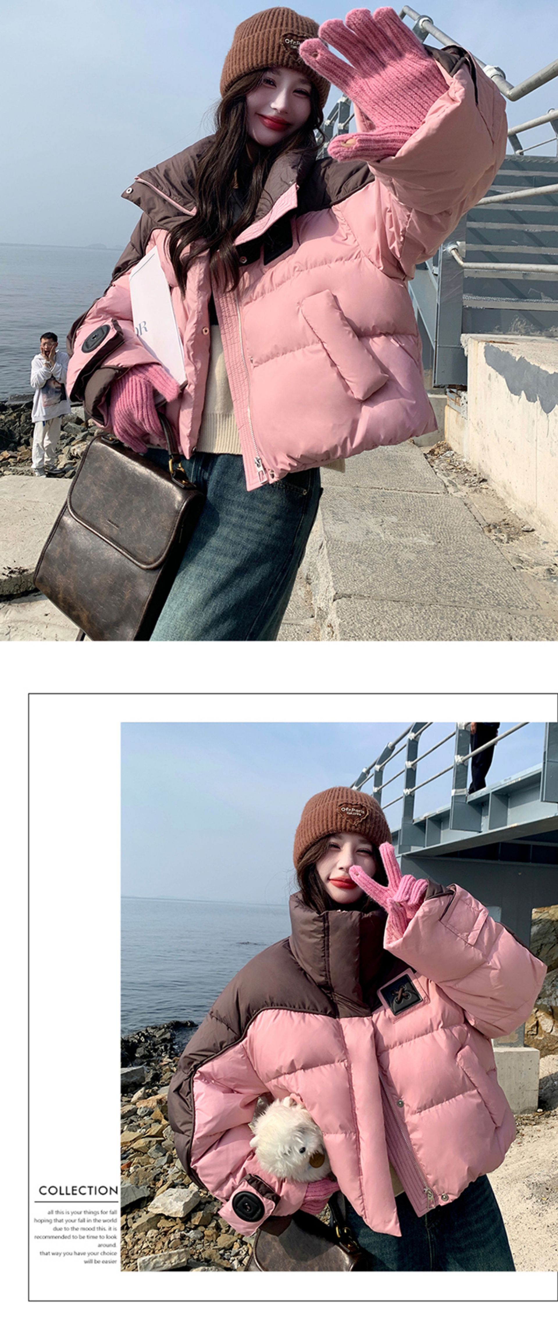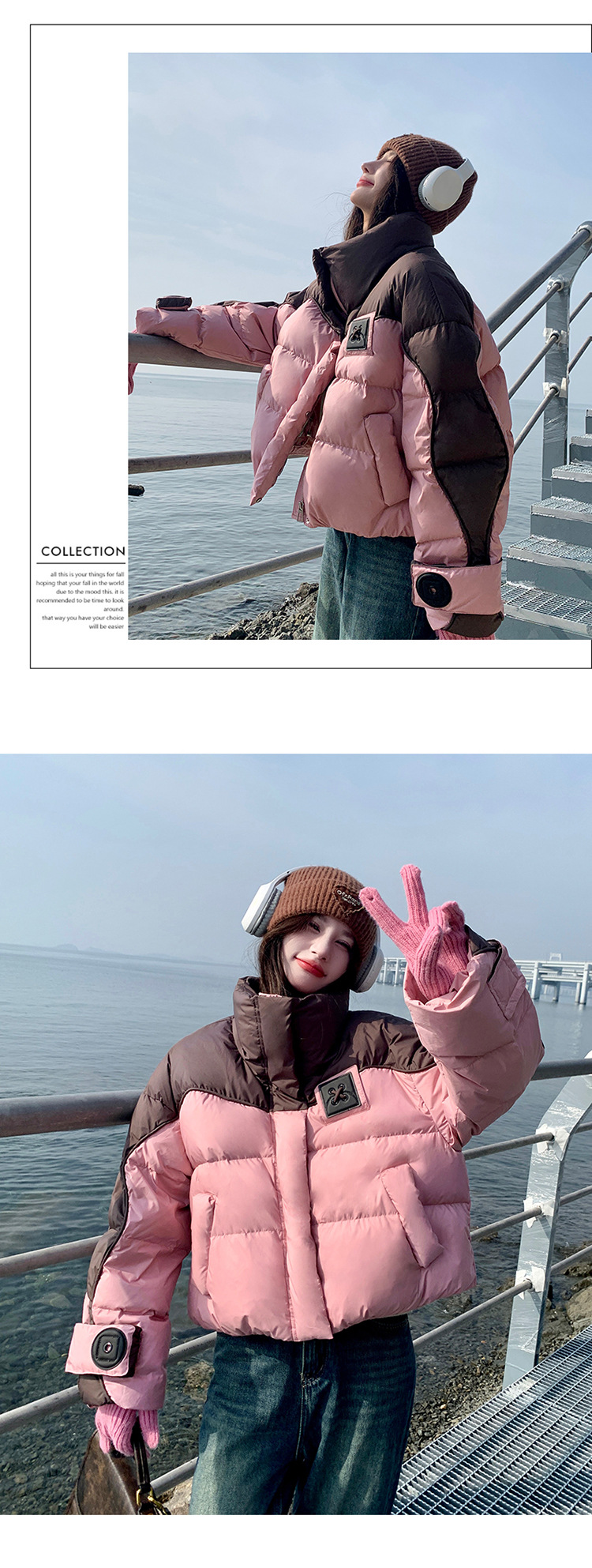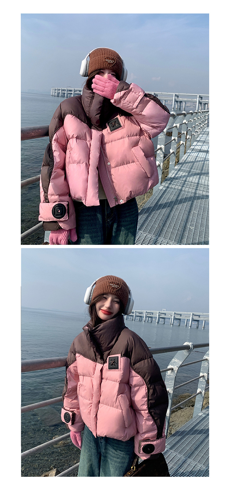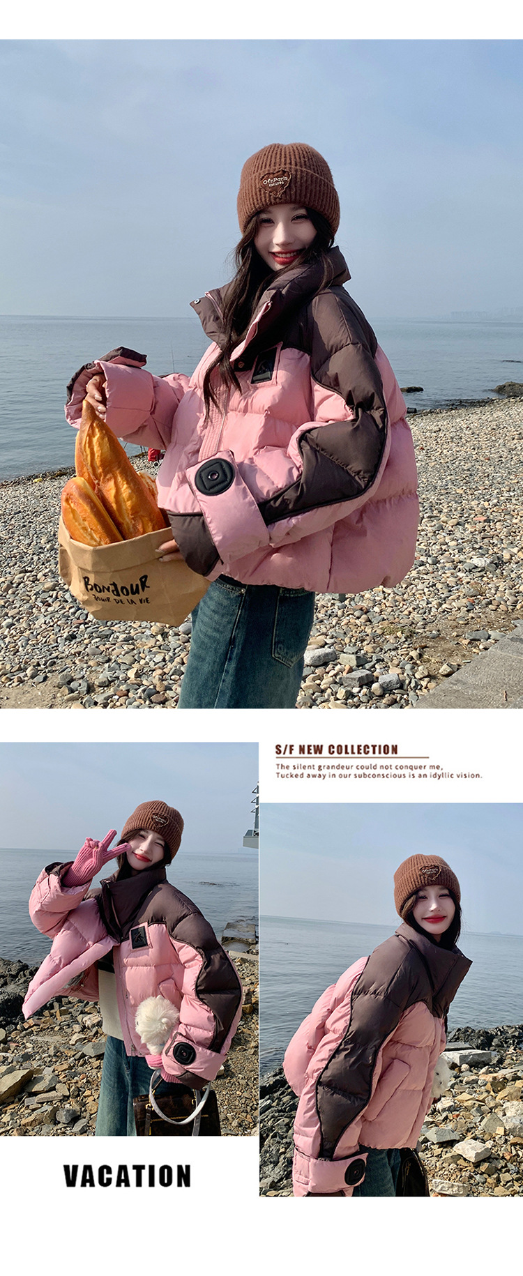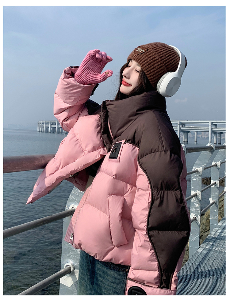 韩版时尚拼色连帽棉服女2025年冬季巨好看超火小个子宽松面包服