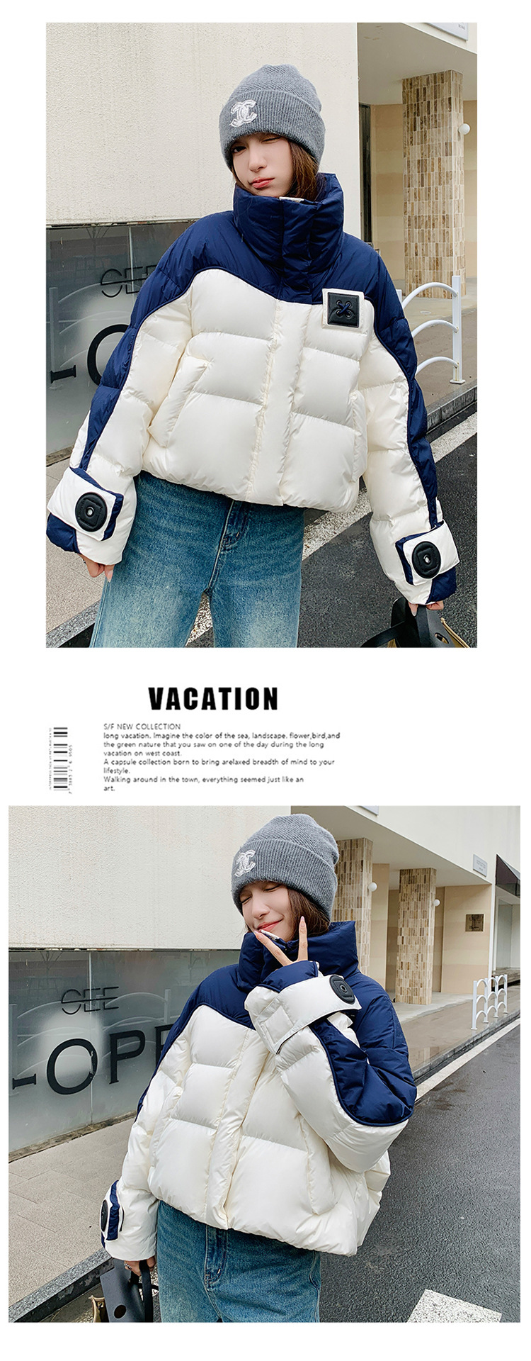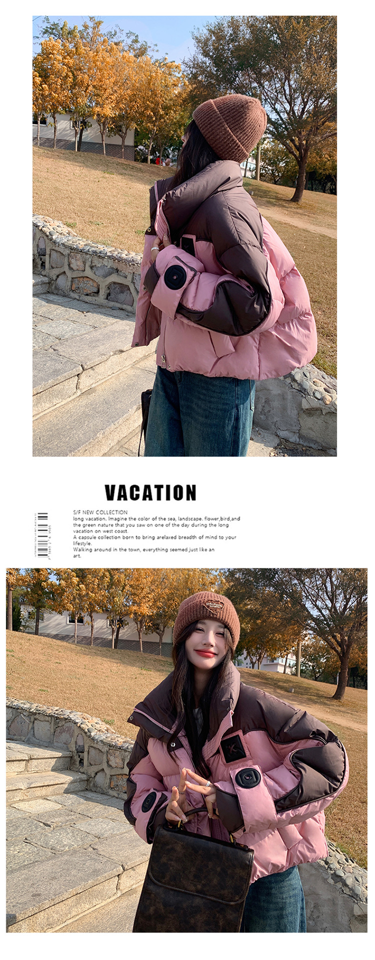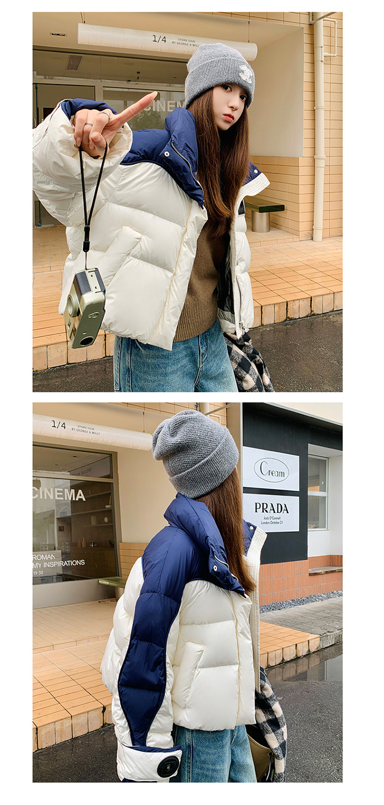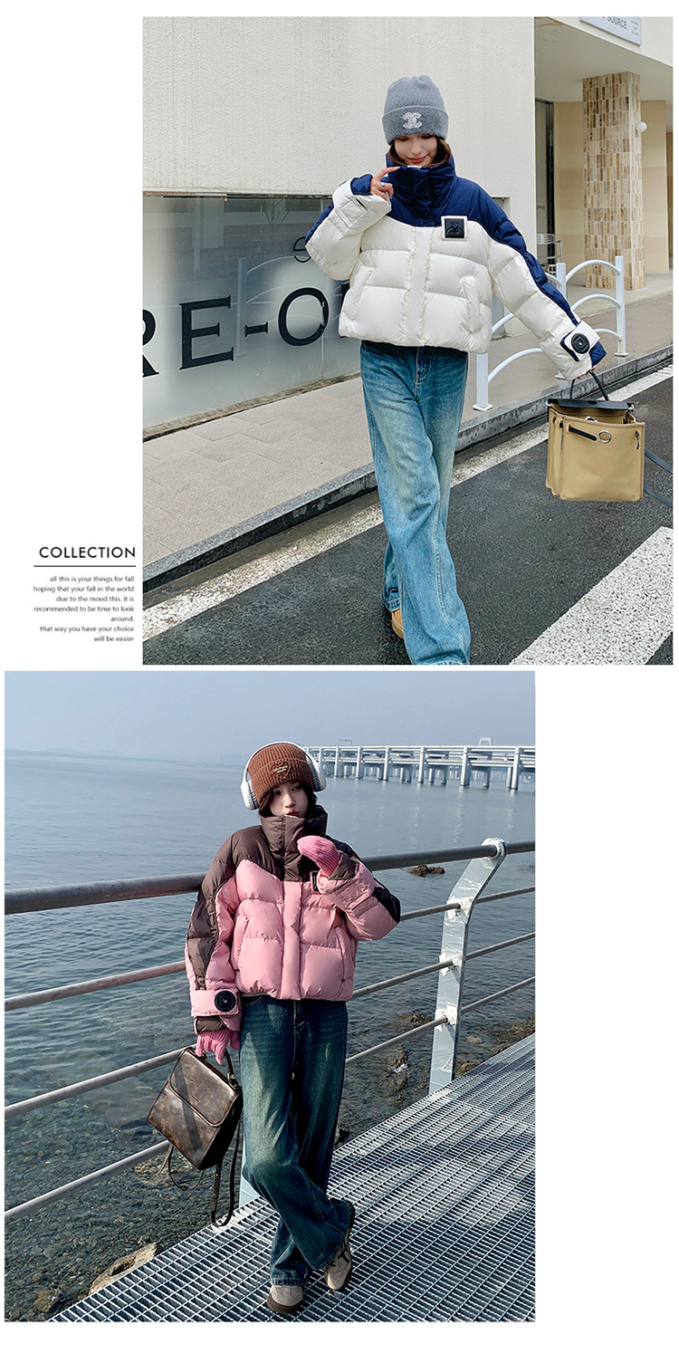 韩版时尚拼色连帽棉服女2025年冬季巨好看超火小个子宽松面包服