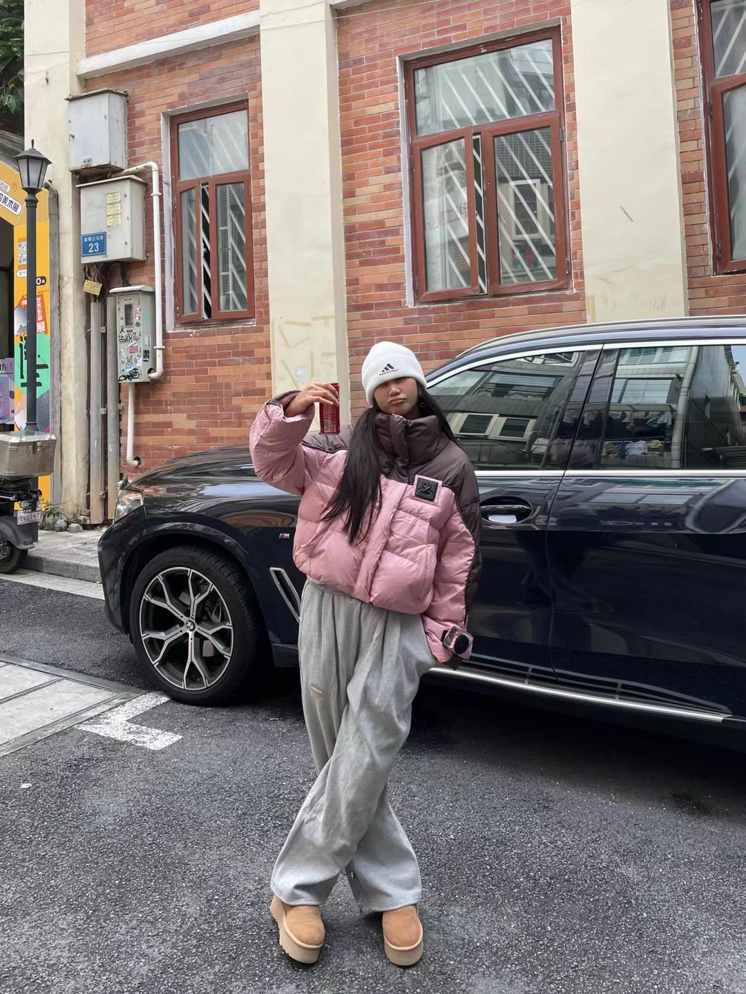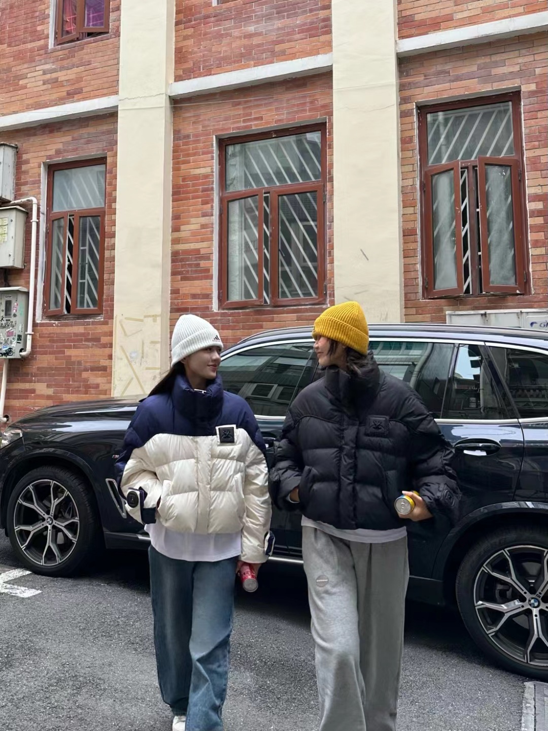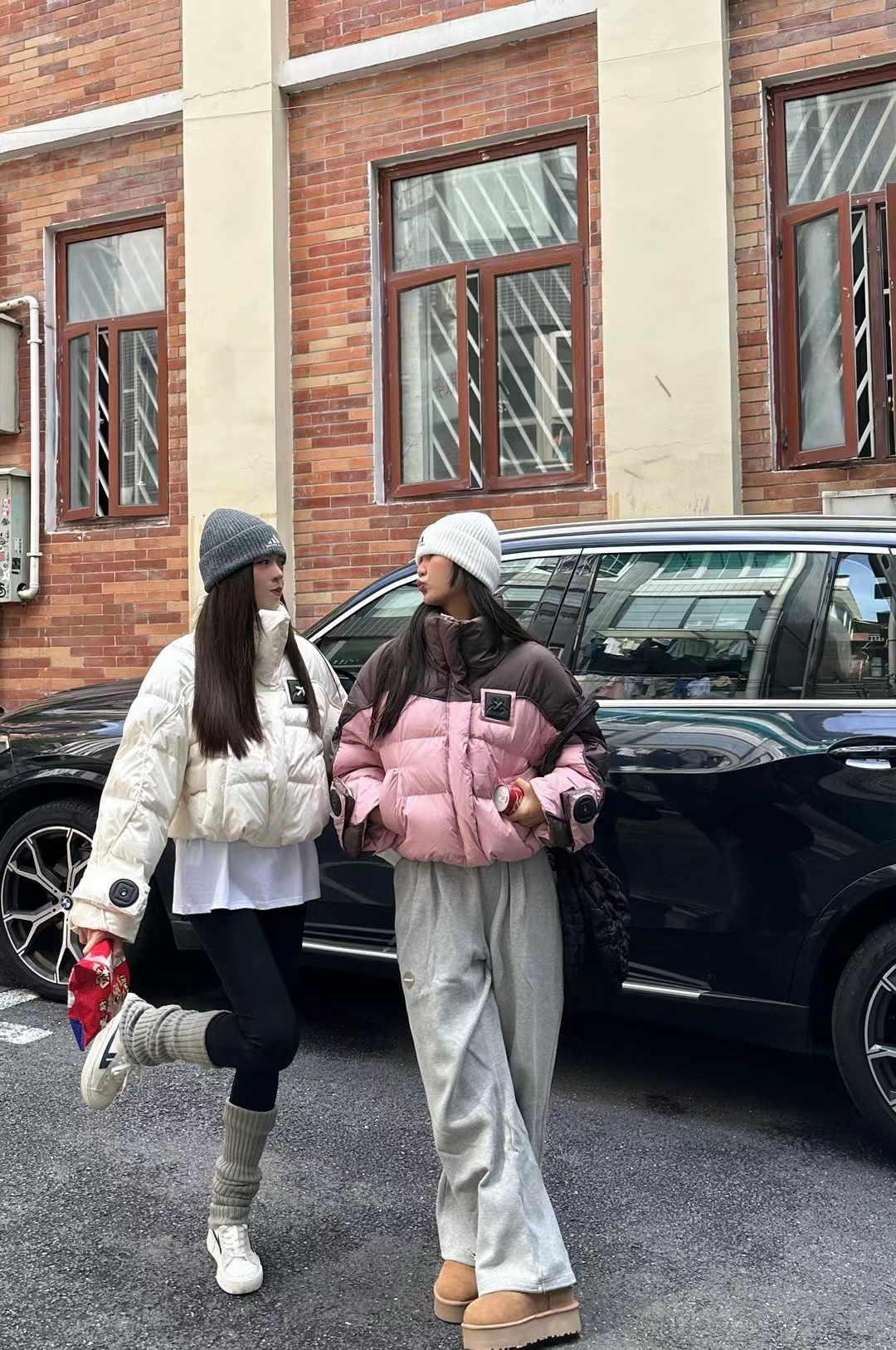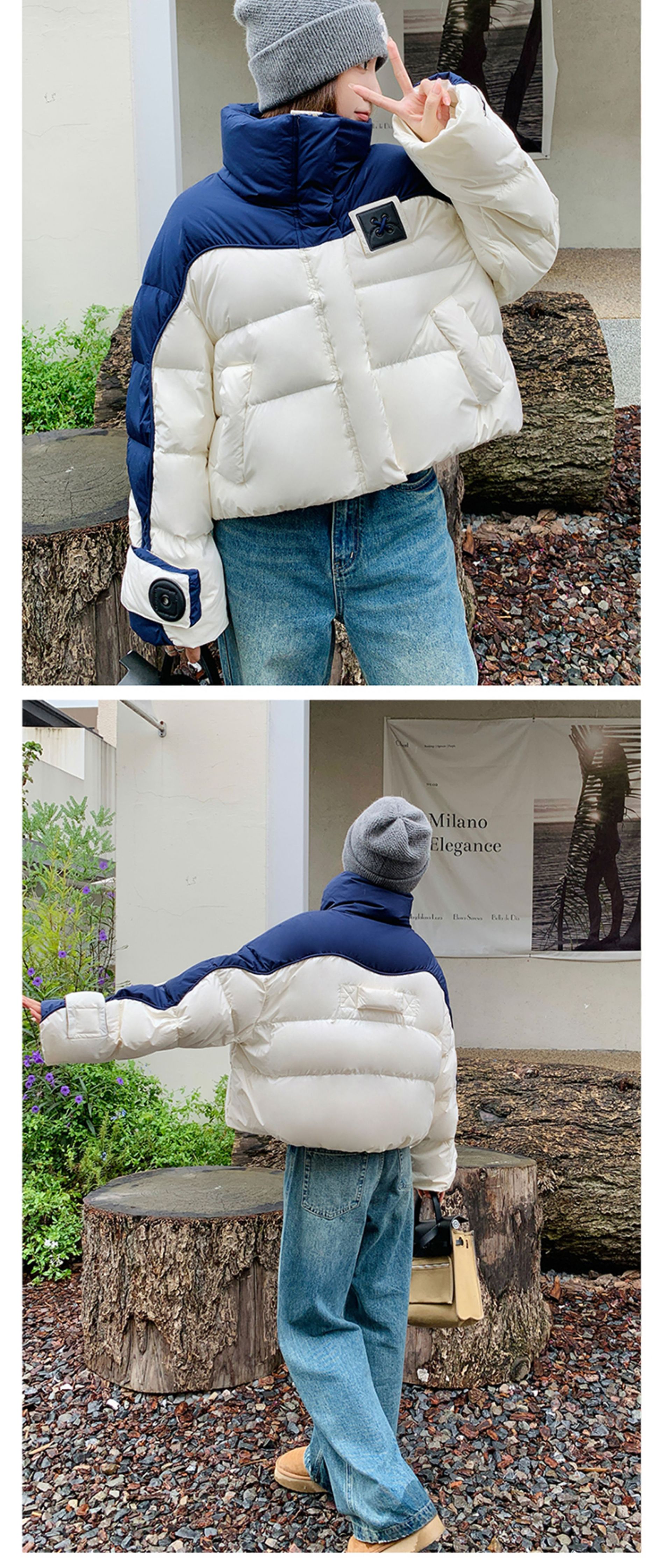 韩版时尚拼色连帽棉服女2025年冬季巨好看超火小个子宽松面包服