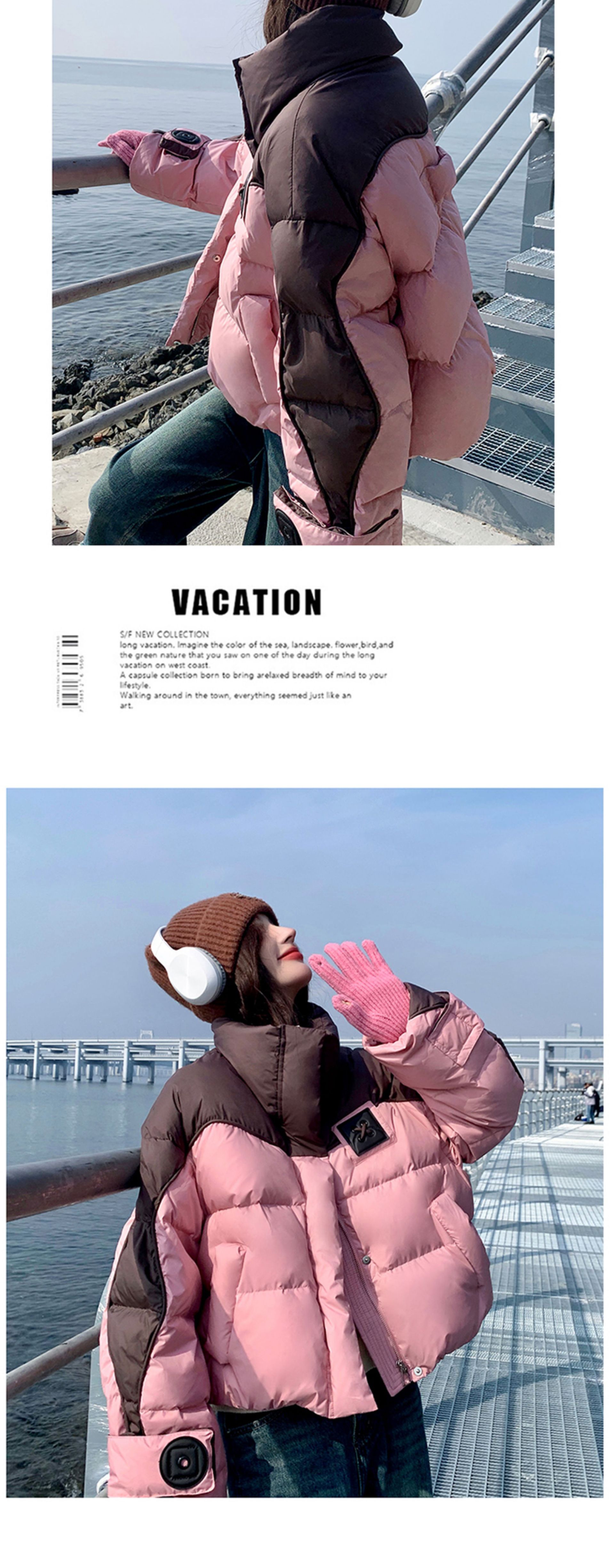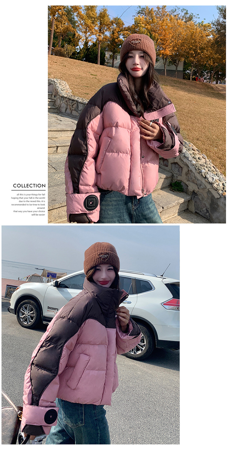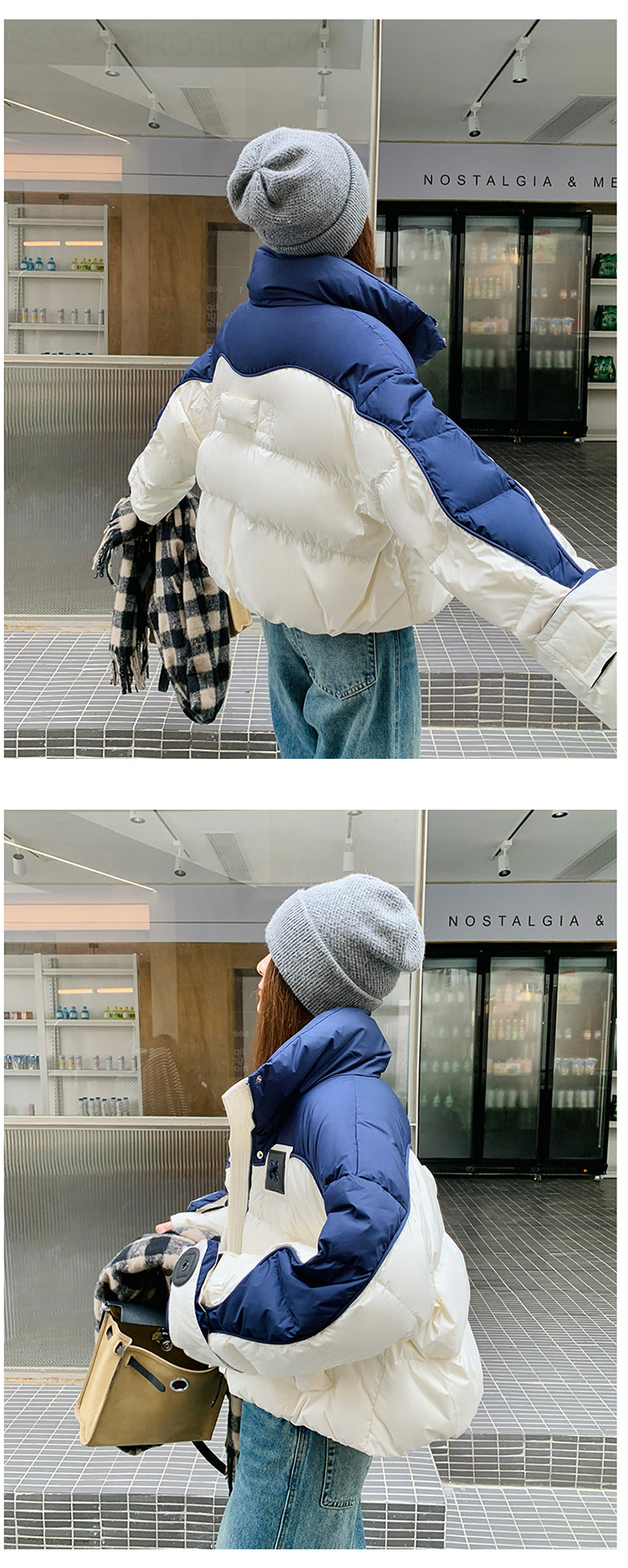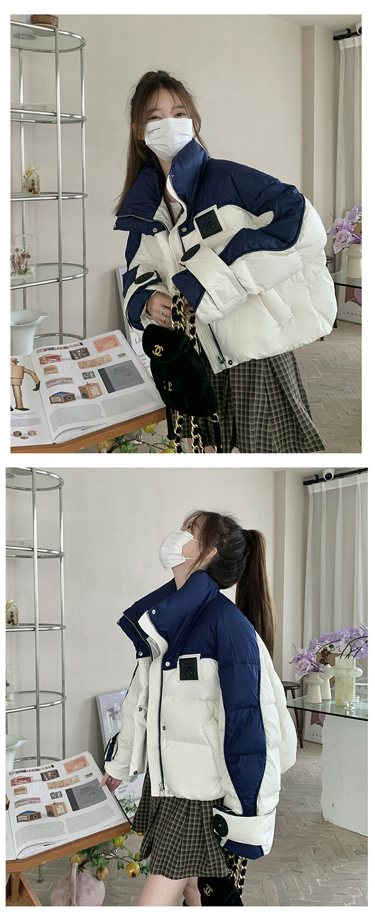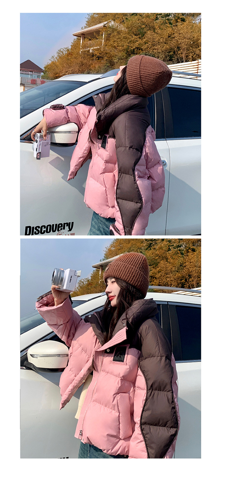 2025年冬の新型韓国版綿入れコートは帽子の中の長さまで厚くて暖かい綿服のゆったりとした色合わせコートです。