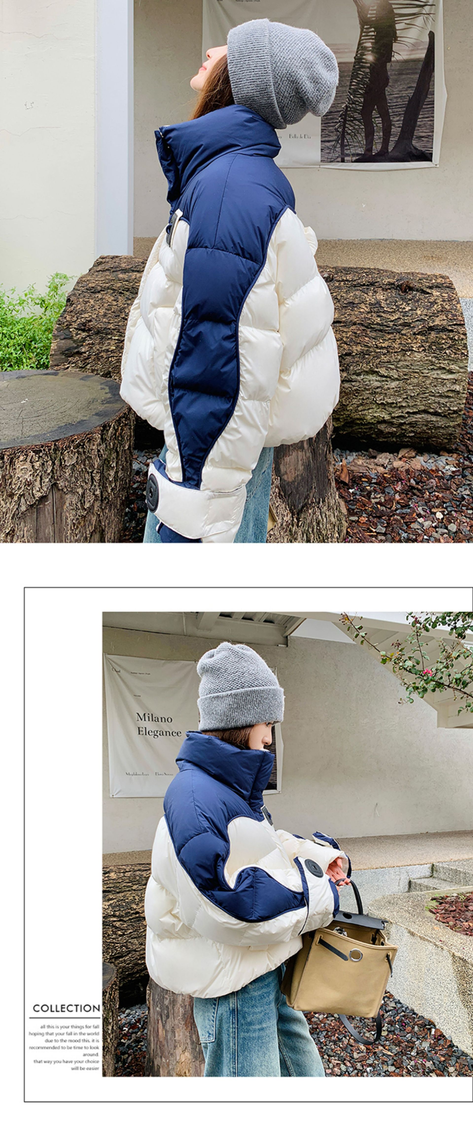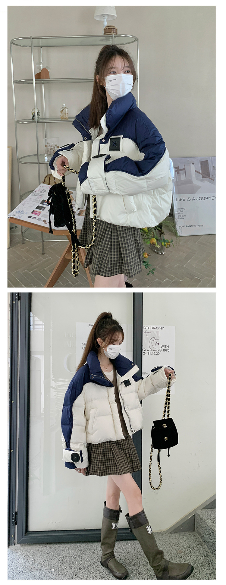 2025年冬季新款韩系中长款棉服女时尚休闲显瘦蓬松拼色保暖外套