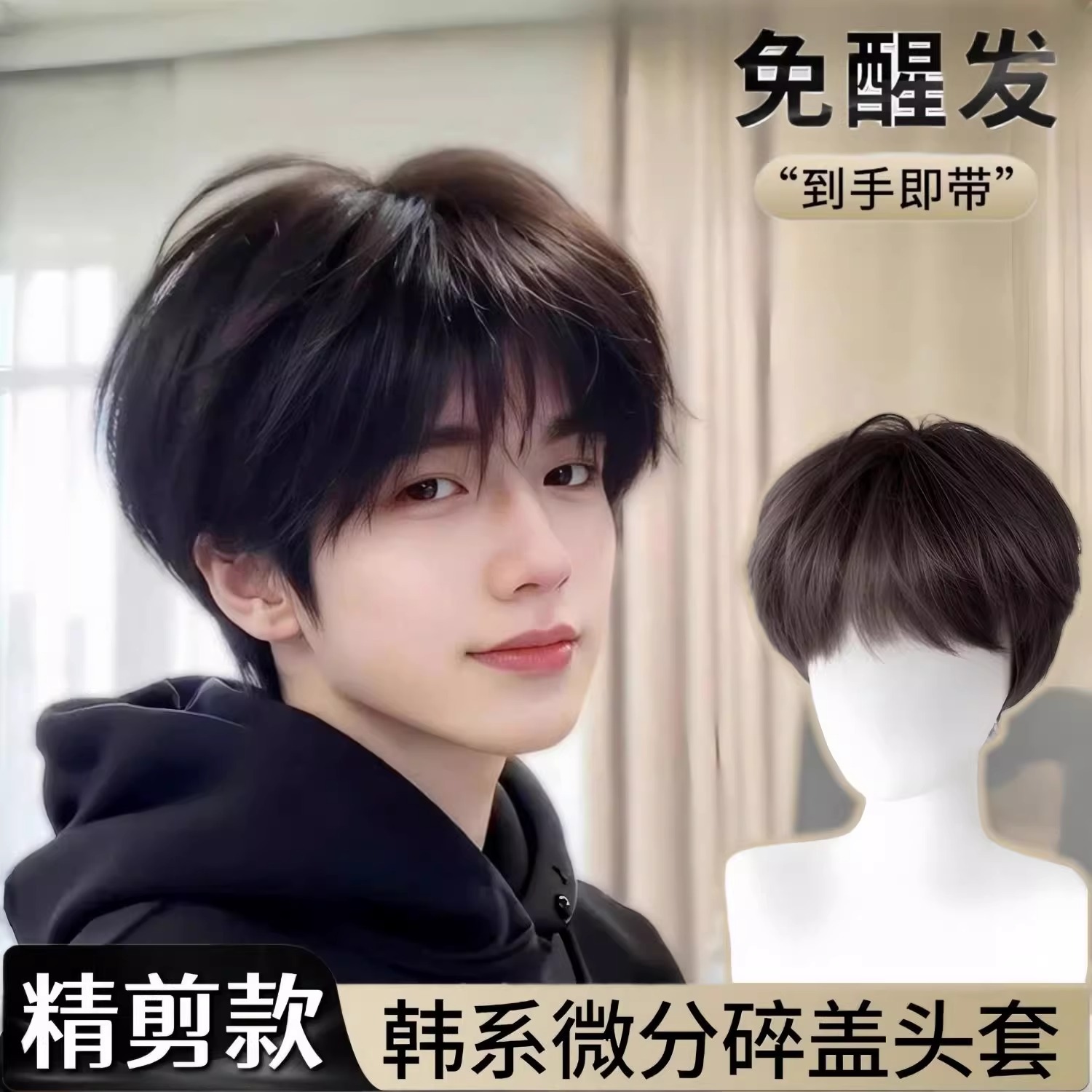 男性用かつら全頭カバー日常韓国式微分蓋ファッション短髪スタイルふわふわした自然なかつらセット