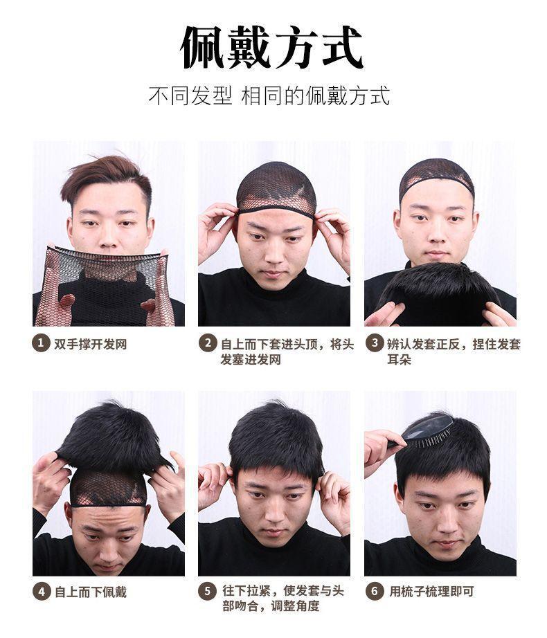 男性のかつらのショートヘアは本当にかっこいいです。見えない頭の上で髪を直します。白髪を隠します。