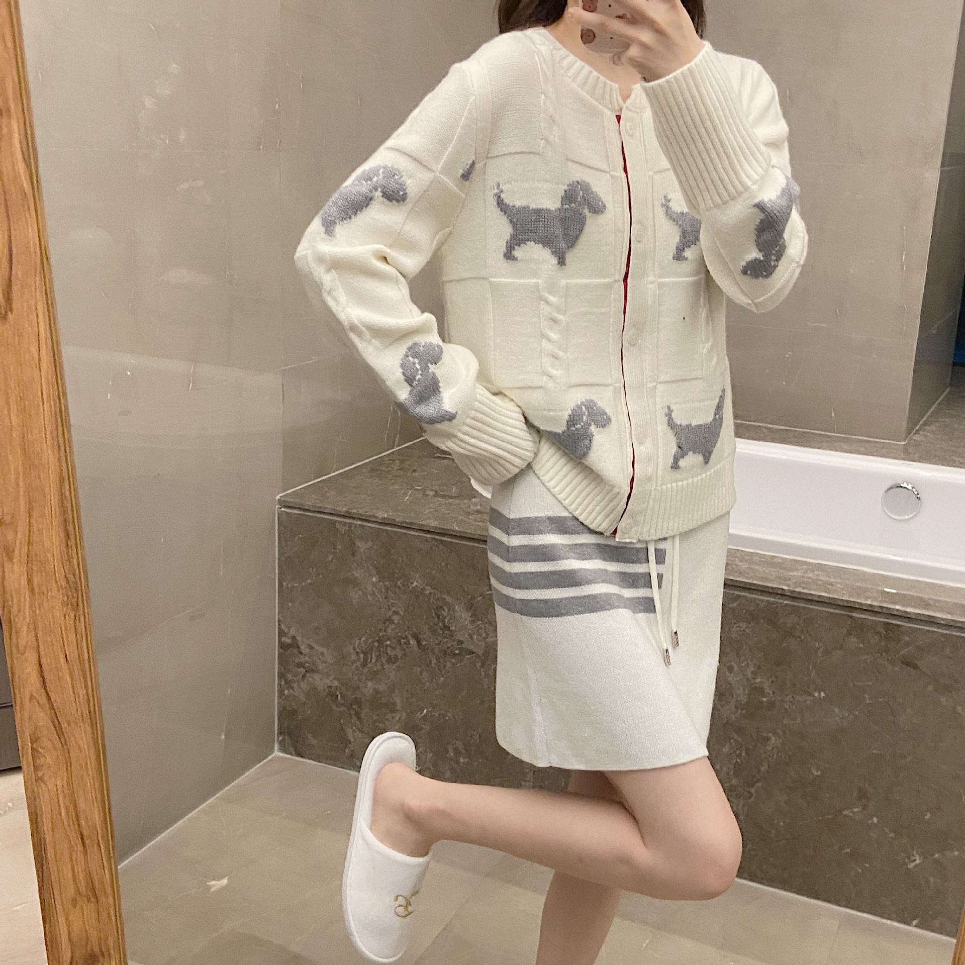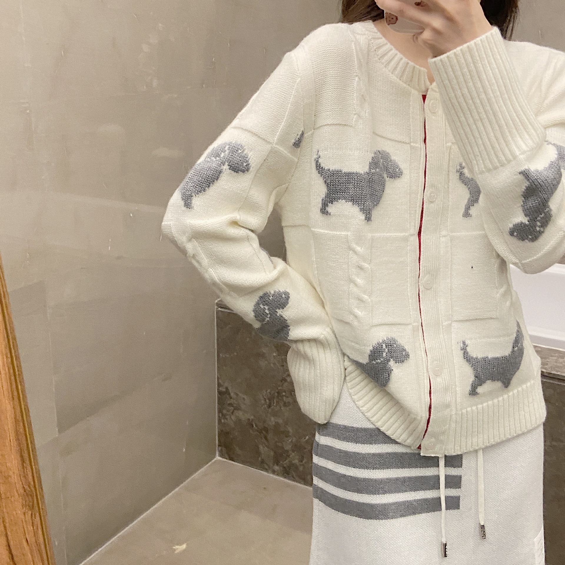 THOM BRASSY サポート暗号化文書9308全身犬柄カーディガン