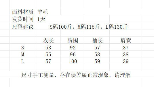 ウールネイビーブルー,ウールホワイト,サイズチャート