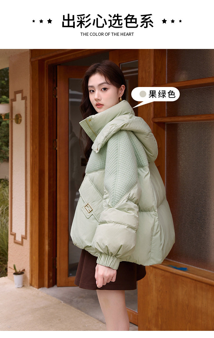 2025年冬季新款中长款棉服女时尚休闲显瘦蓬松韩系拼色保暖外套