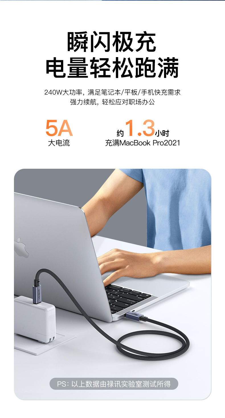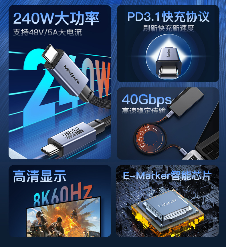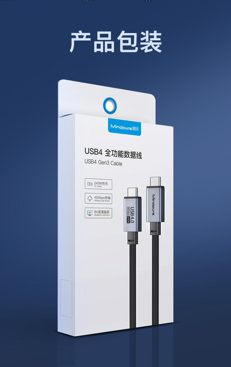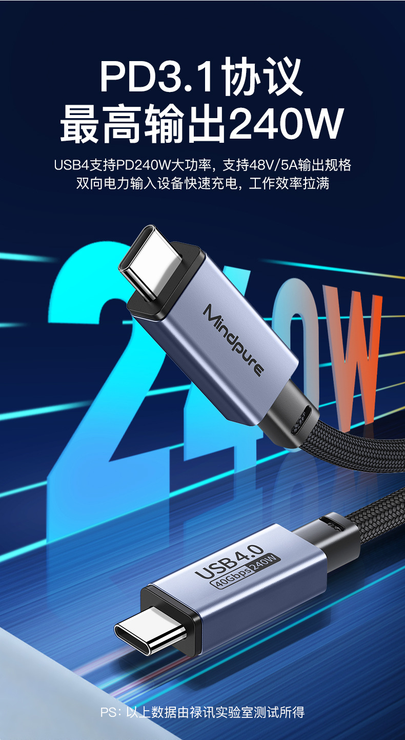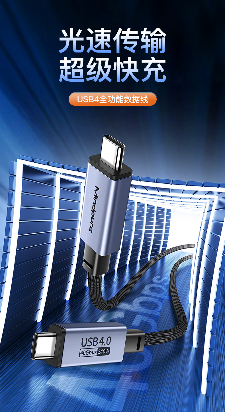 usb4全功能数据线8k60hz 240w快充雷电4 type-c公对公usb4数据线