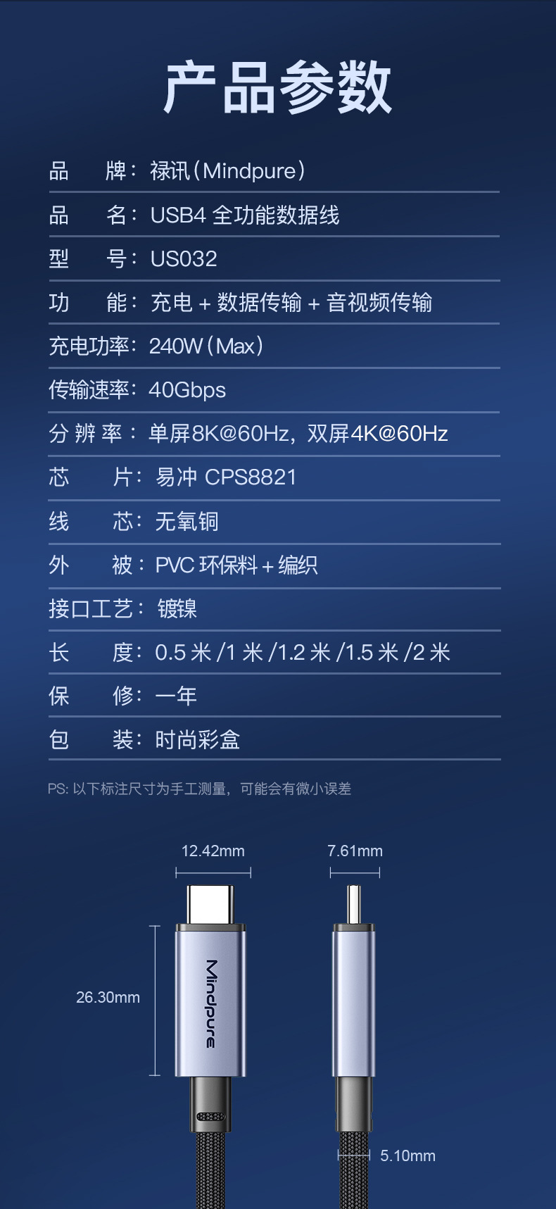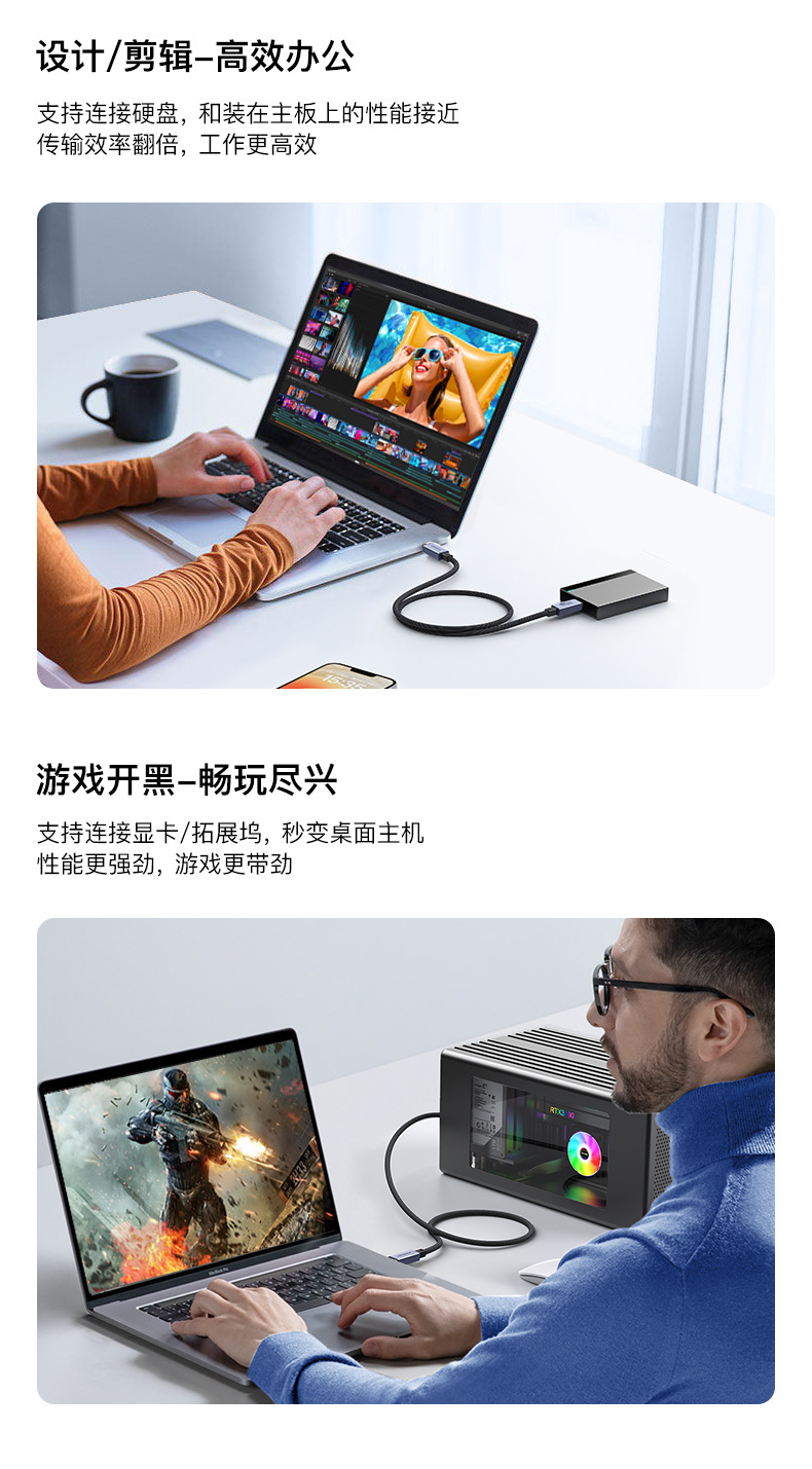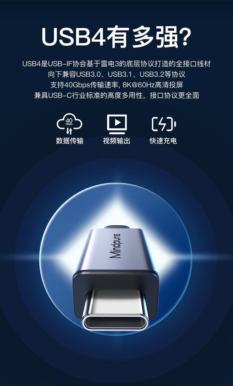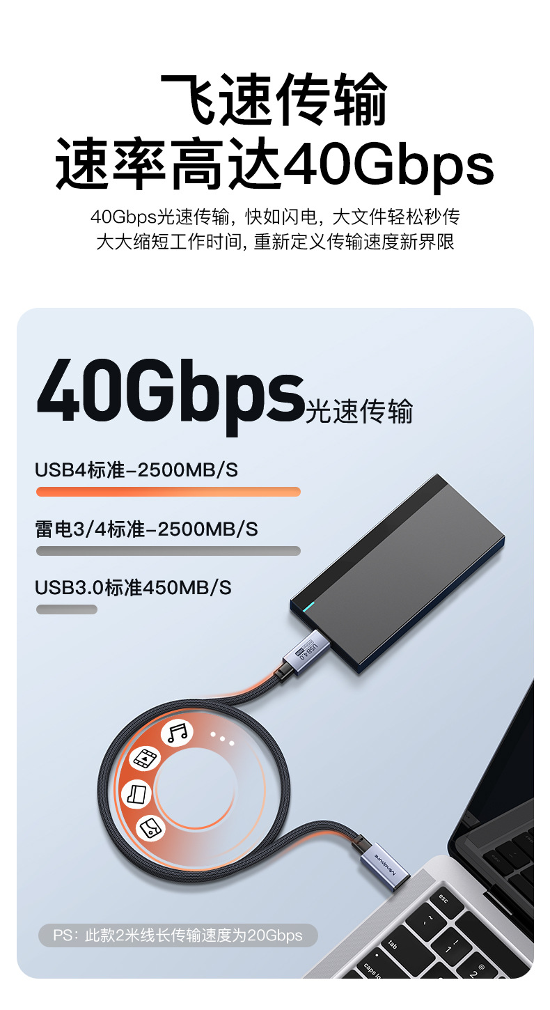 usb4全功能数据线8k60hz 240w快充雷电4 type-c公对公usb4数据线