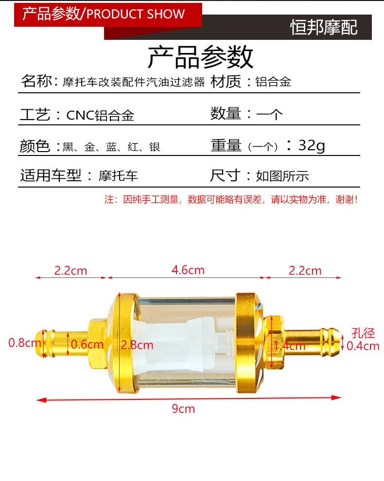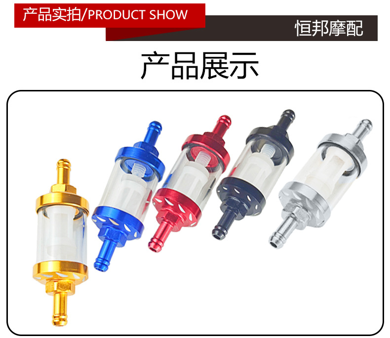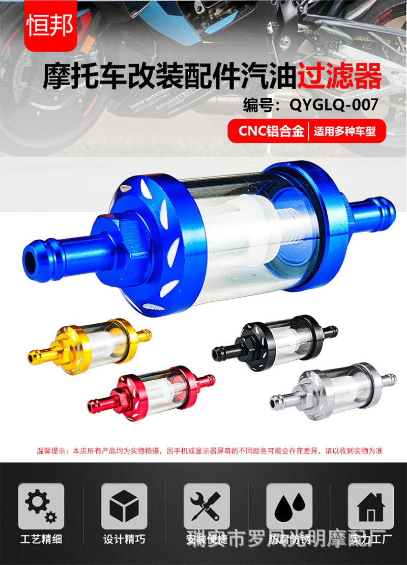 摩托车改装配件铝合金铜芯汽油过滤器适用雅马哈川崎大流量滤清器