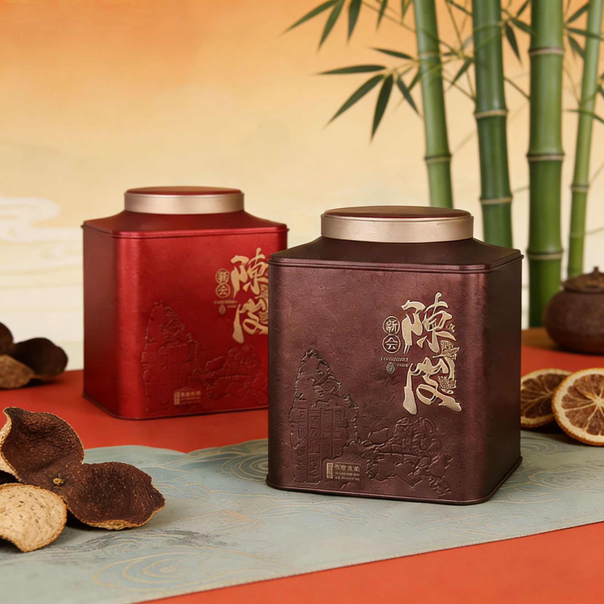 陈皮储存罐双盖防潮茶饼茶叶竹笋罐铁桶大号加厚马口铁新会陈皮罐
