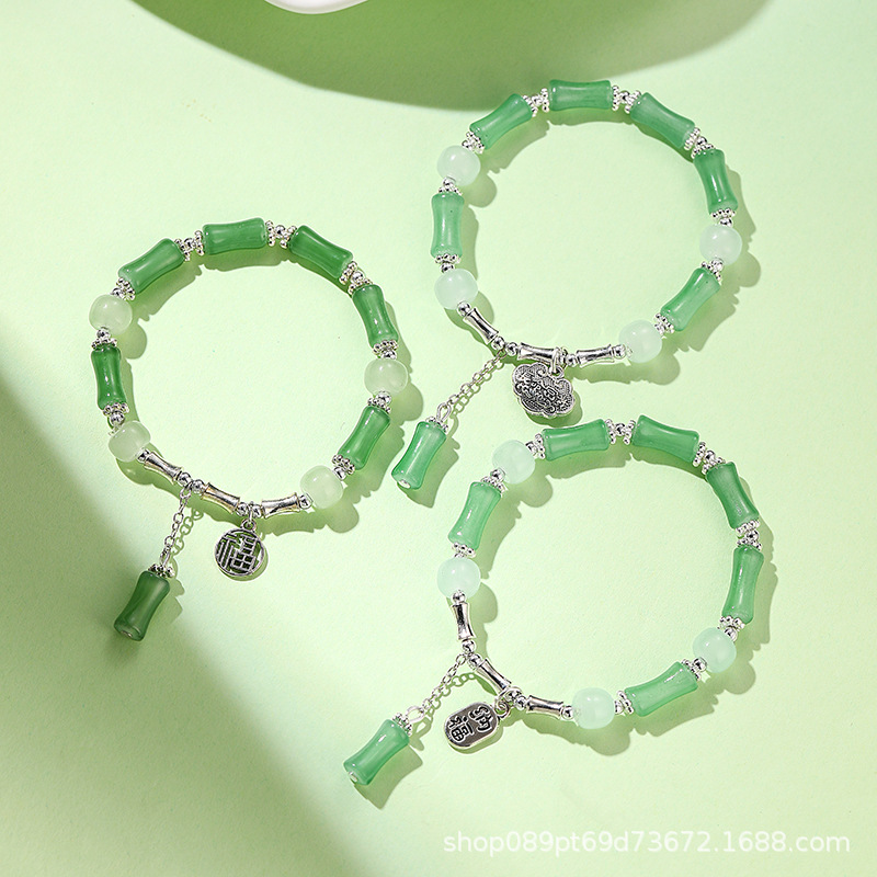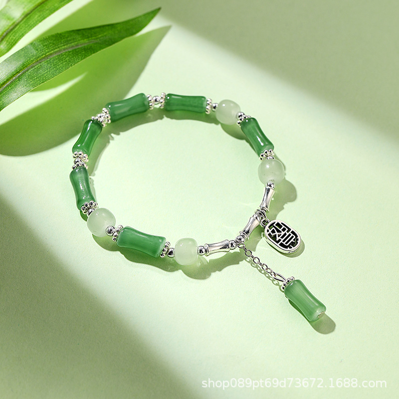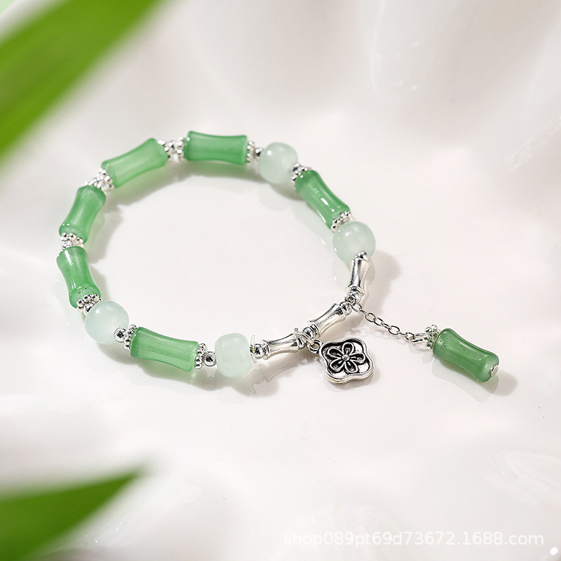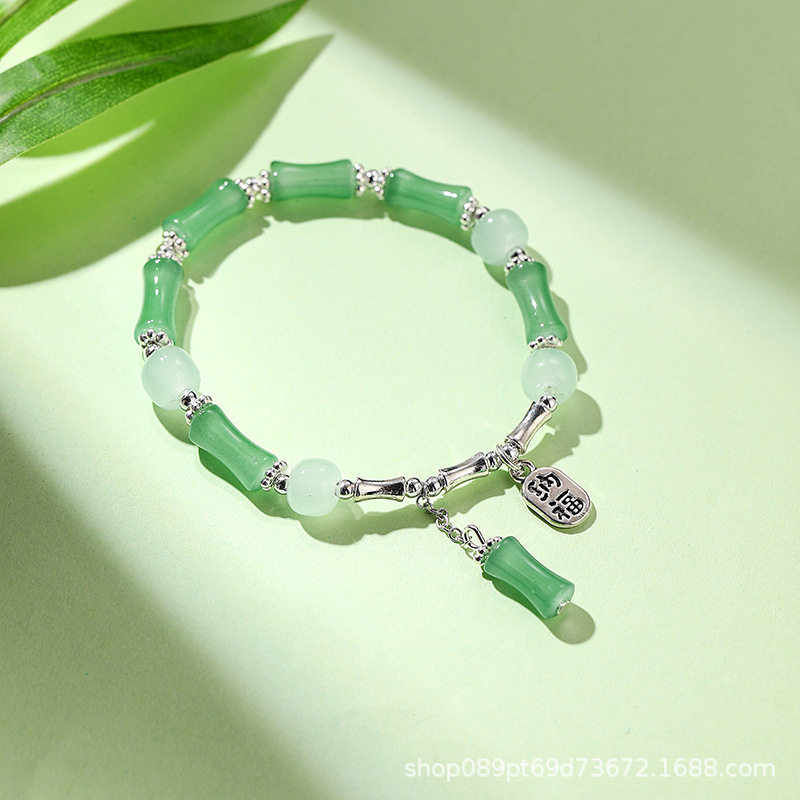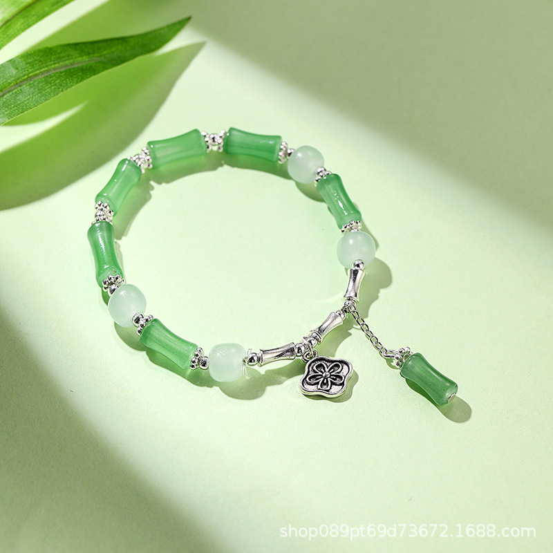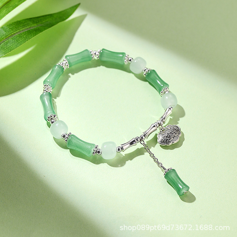 女性用中国風の氷のように透明な竹節ガラスブレスレット、富と幸運を呼び込む、高級感、ライブ放送、人気商品、卸売