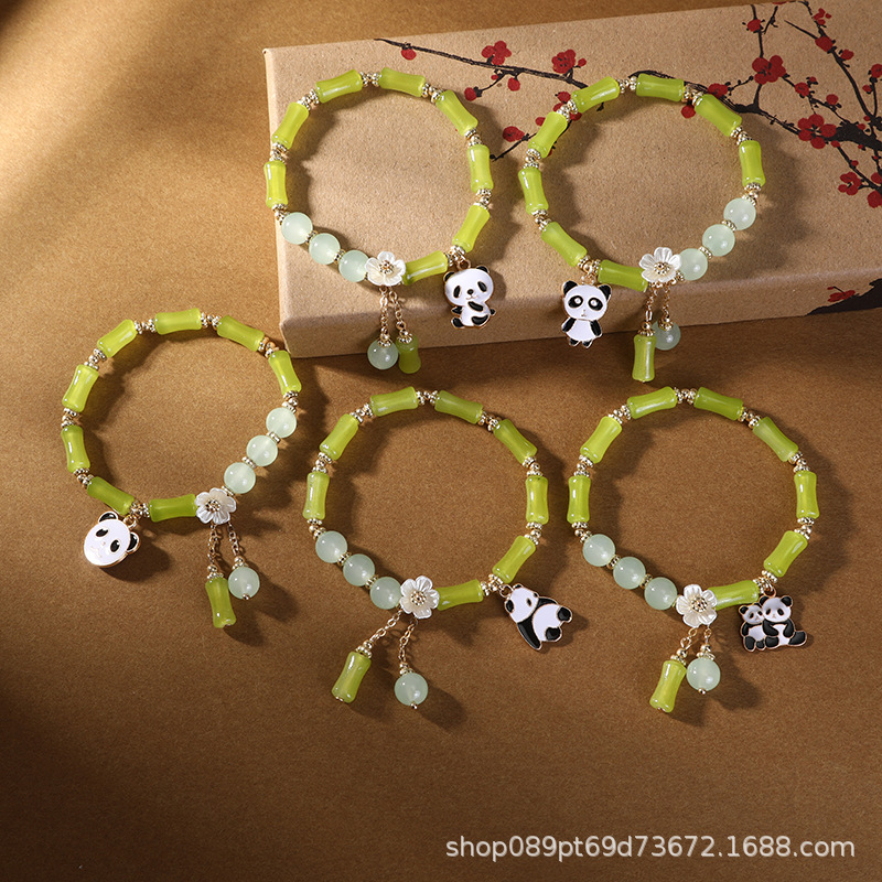 中国式の竹の日のパンダのブレスレットの女性の国風のツバキの花の瑠璃の手の串の数珠の装飾品の観光スポットの夜市は屋台を並べて卸売りします。