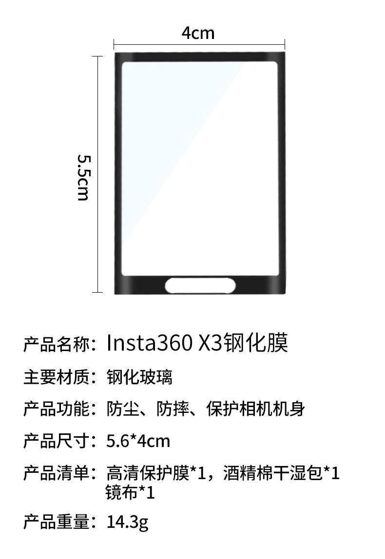 适用于影石Insta360X5X4X3X2镜头玻璃保护镜屏幕钢化膜硅胶配件