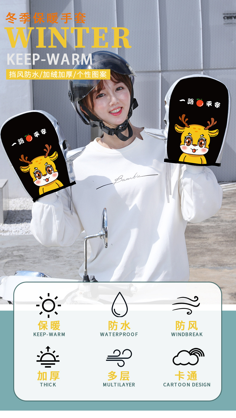 電動バイク手袋冬保温電気自動車ハンドルカバー防寒防水防風厚手男女ハンドルハンド