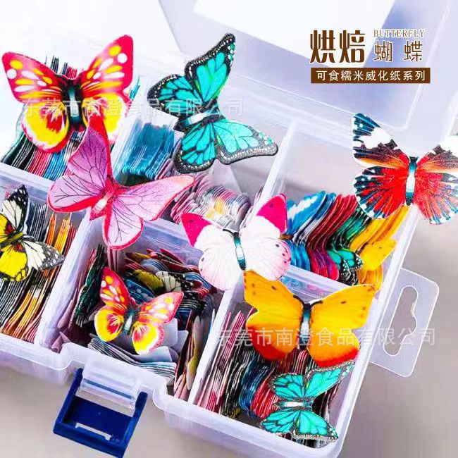 跨境蝴蝶糯米纸烘焙装饰生日蛋糕甜品酒店冷菜摆盘淀粉威化纸批发
