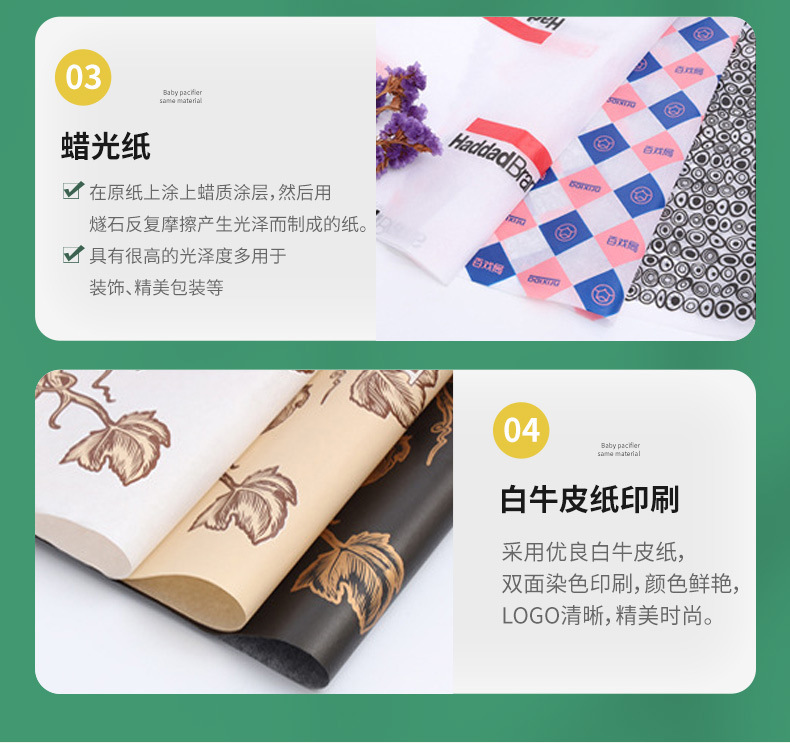 工場卸売り木材パルプクラフト紙30-70グラム単光白クラフト紙印刷パターンロゴ美しい包装紙