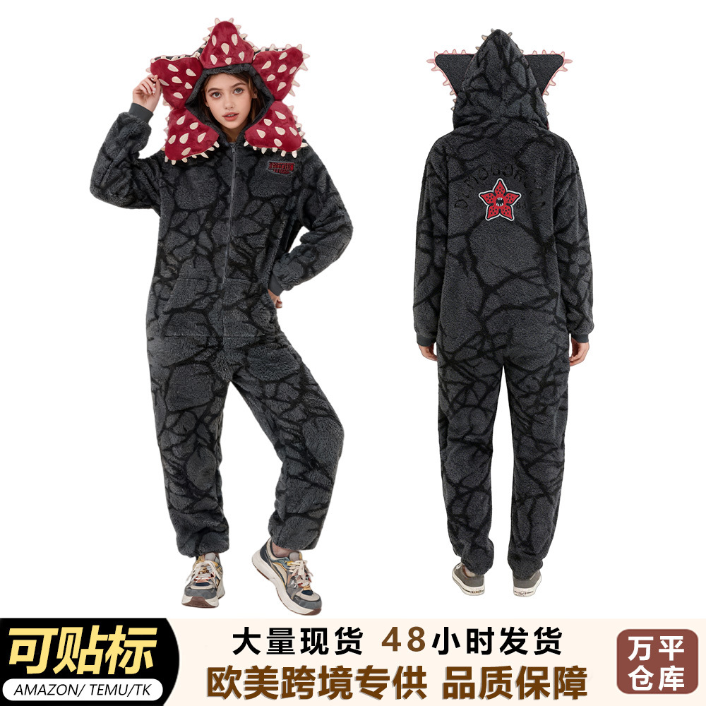 跨境W食人花连体睡衣cos套装珊瑚绒连帽搞怪可爱睡衣圣诞氛围款X
