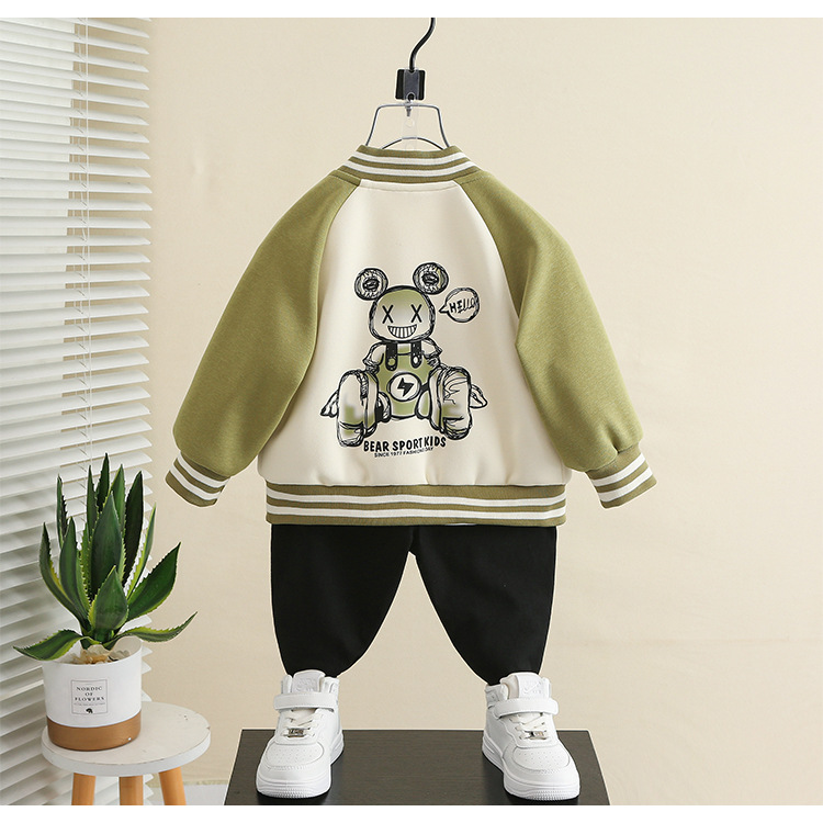 男の子用冬服セット2025新作子供用おしゃれな裏起毛厚手冬服ベビー韓国風ベスト3点セット流行